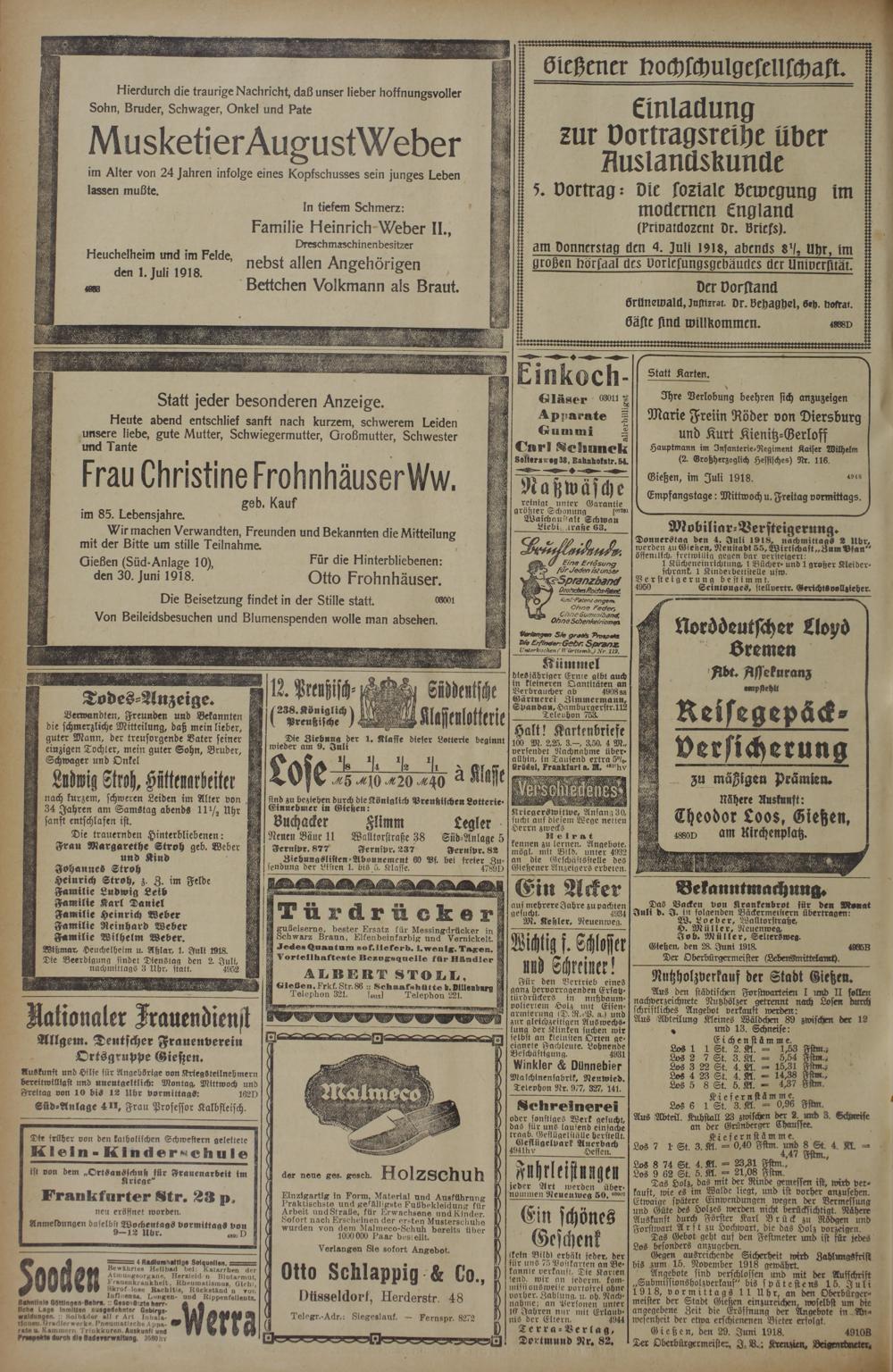 Regionale Zeitungen aus der Zeit des Ersten Weltkrieges