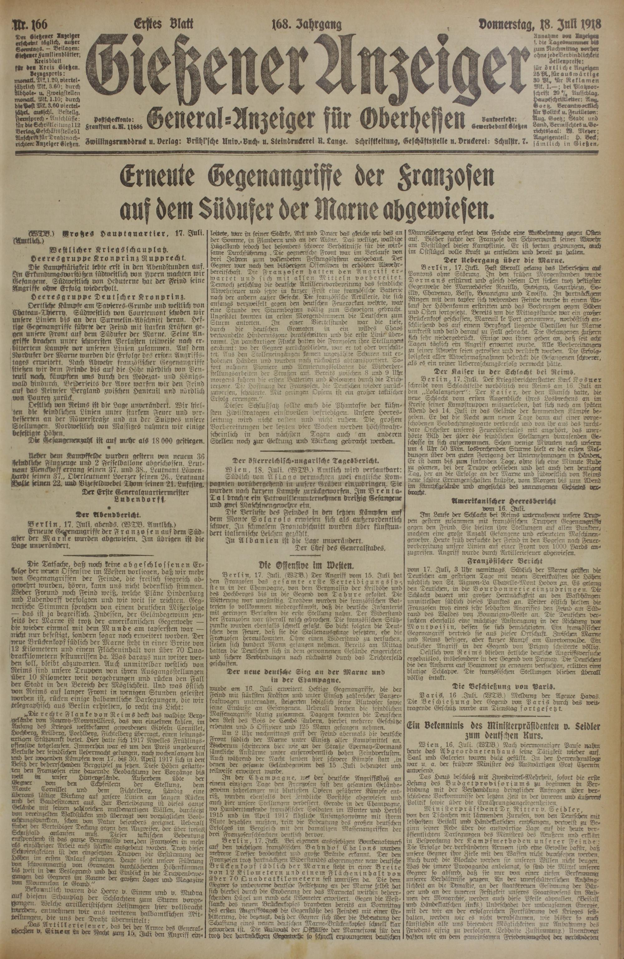 Gießener Anzeiger. 1868-1943