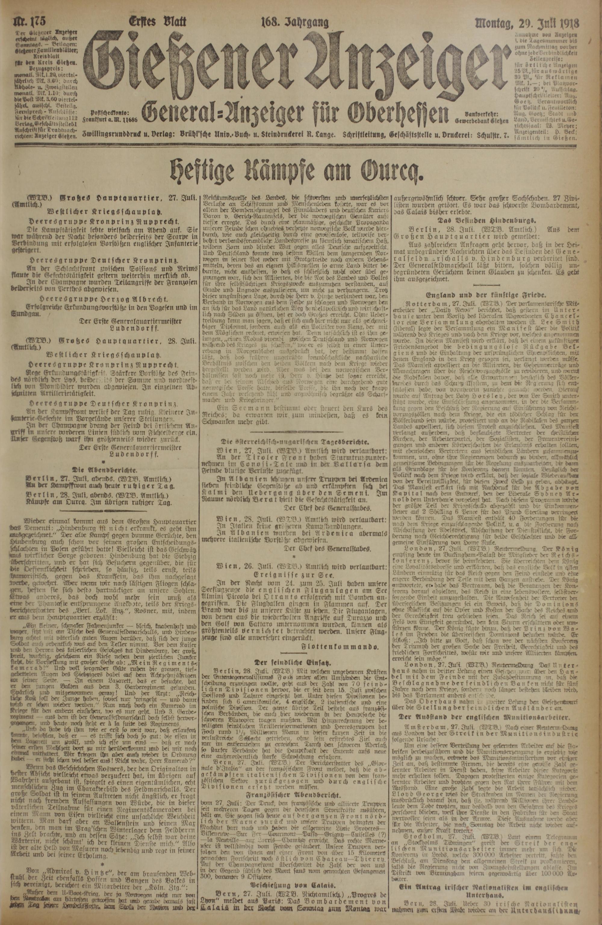 Gießener Anzeiger. 1868-1943
