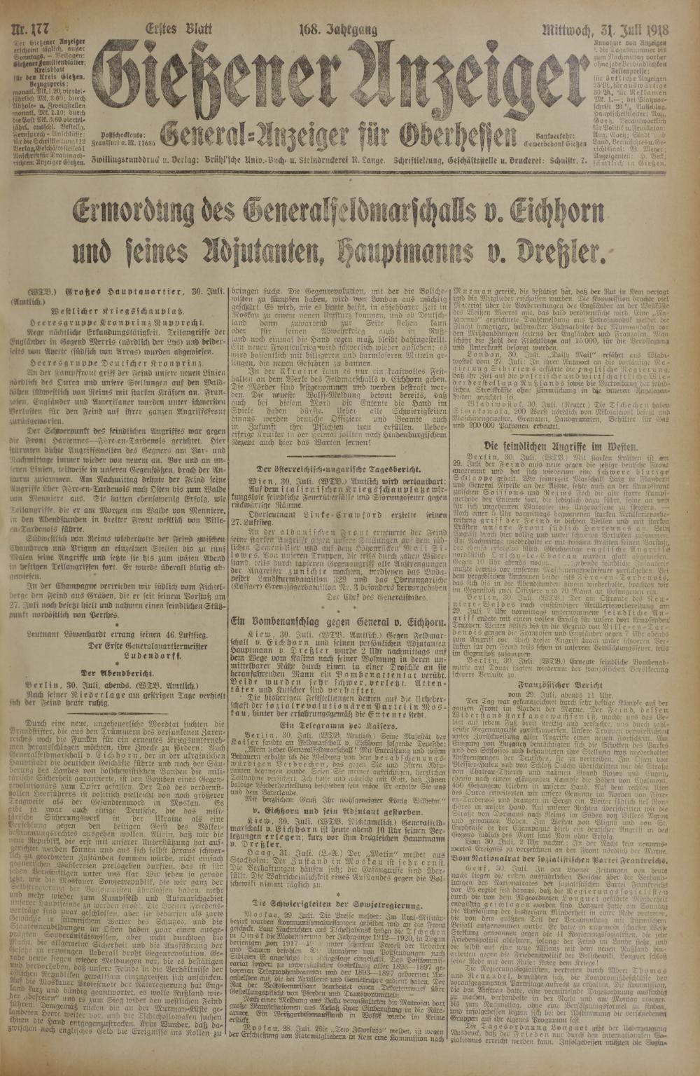 Der Erste Weltkrieg im Spiegel hessischer Regionalzeitungen