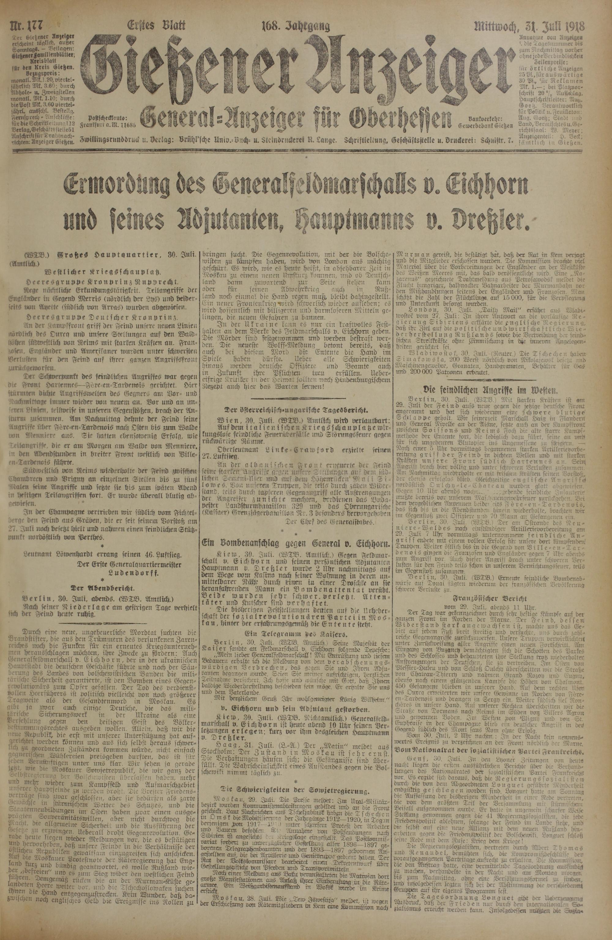 Regionale Zeitungen aus der Zeit des Ersten Weltkrieges
