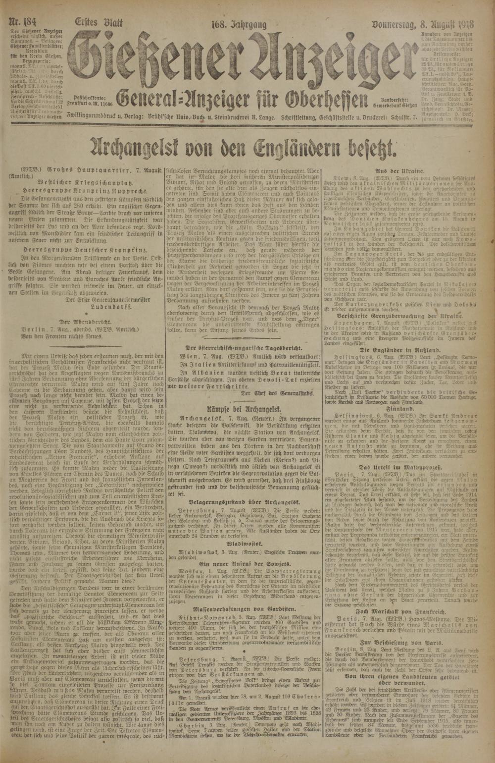 Gießener Anzeiger. 1868-1943