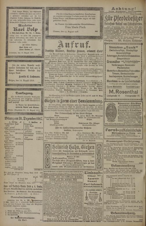 Regionale Zeitungen aus der Zeit des Ersten Weltkrieges