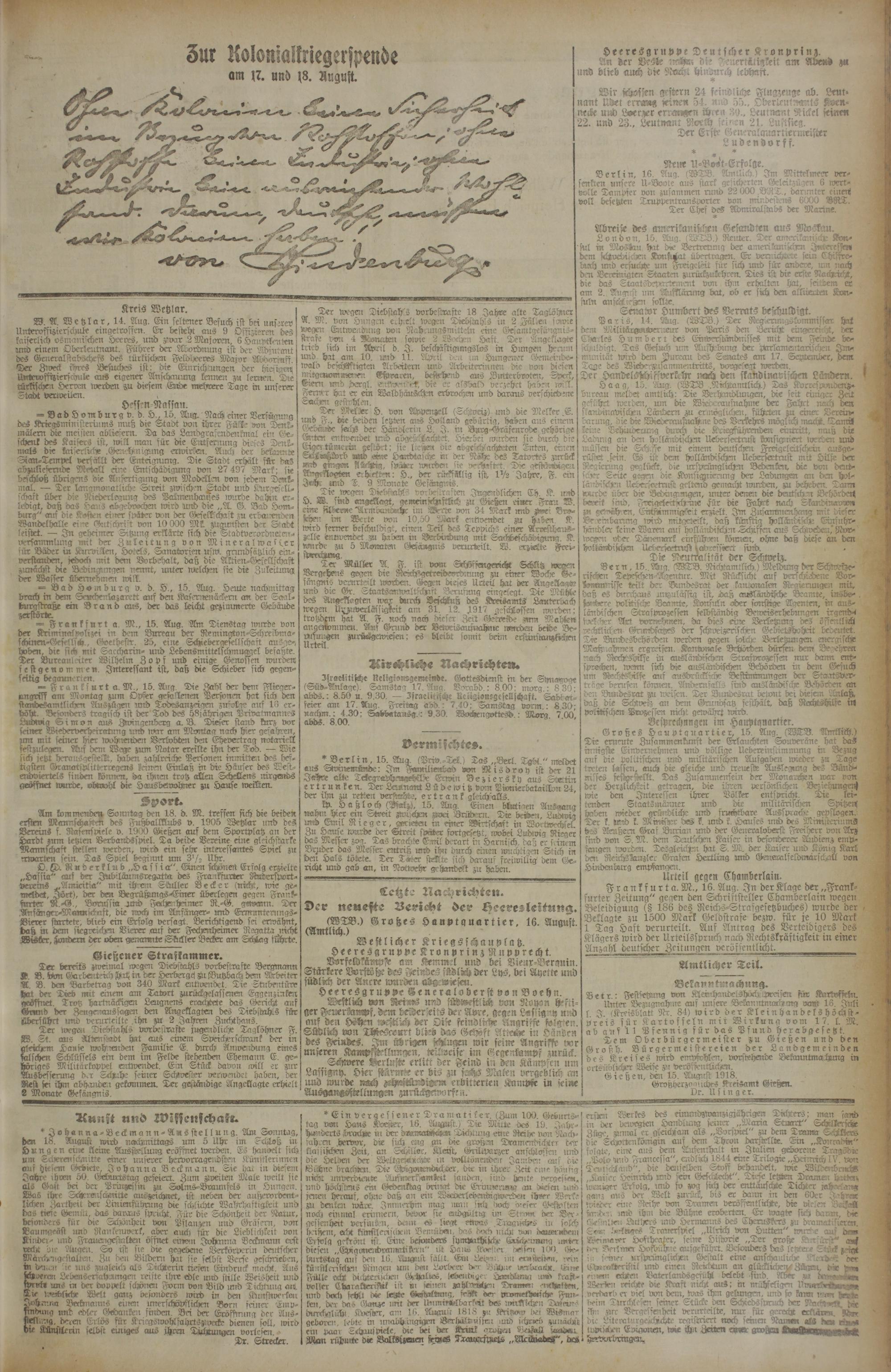 Regionale Zeitungen aus der Zeit des Ersten Weltkrieges