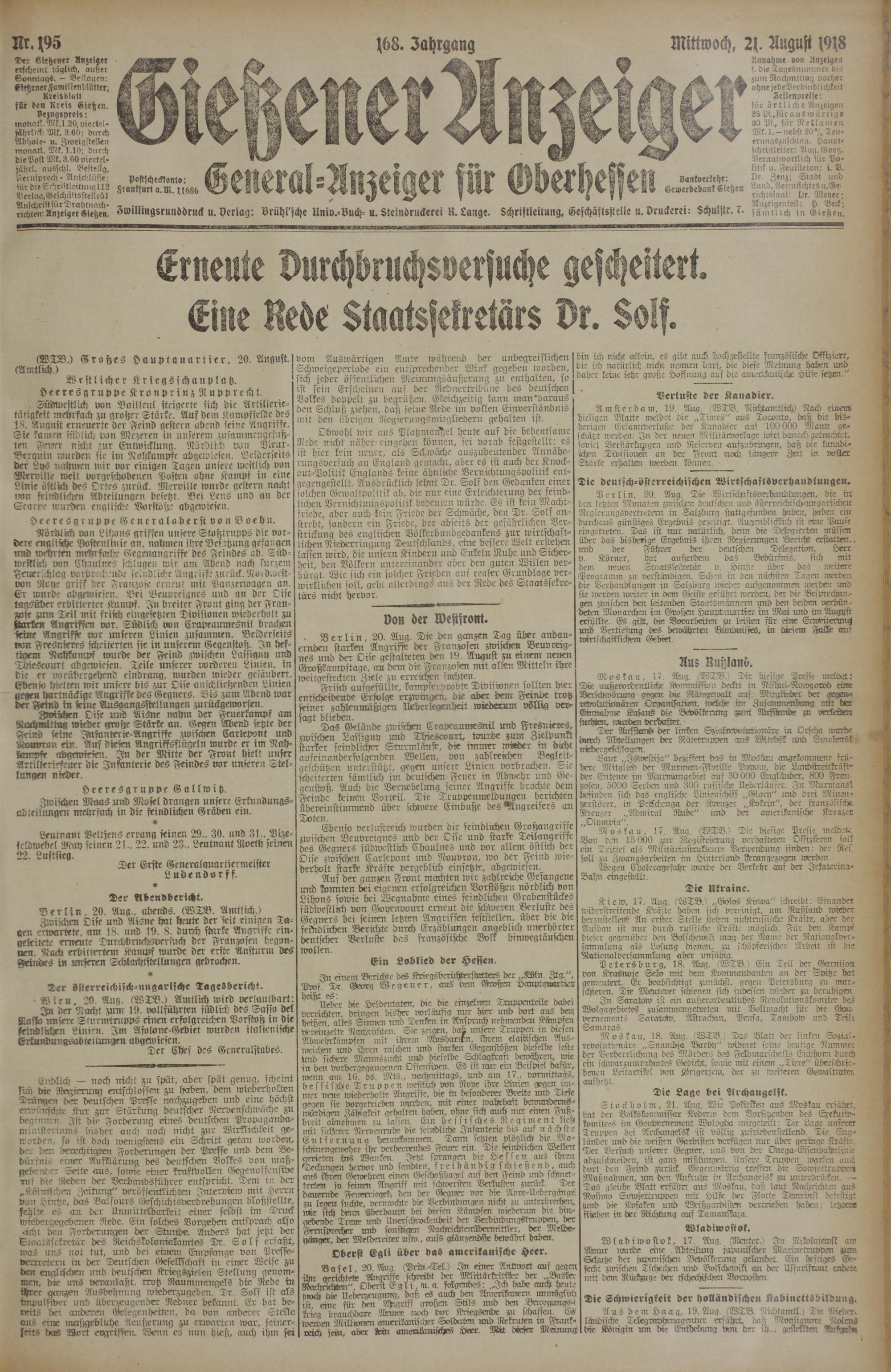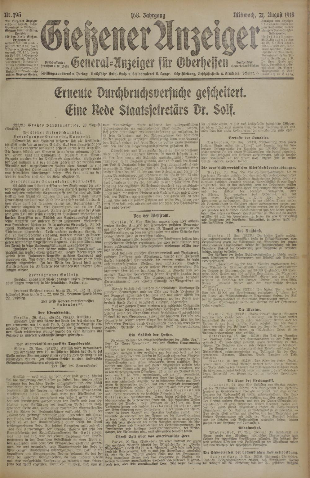 Gießener Anzeiger. 1868-1943