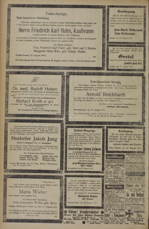 Regionale Zeitungen aus der Zeit des Ersten Weltkrieges