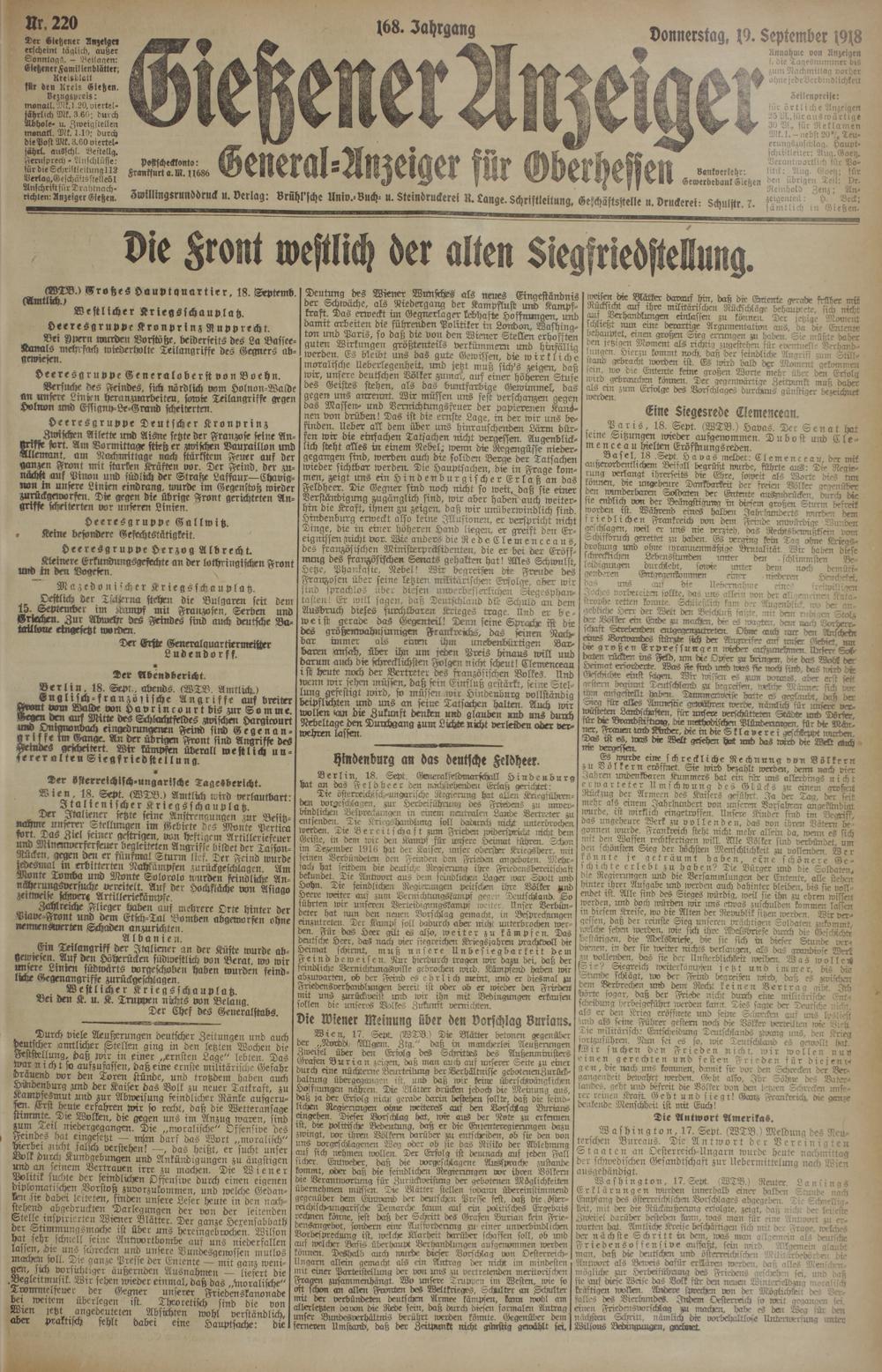 Regionale Zeitungen aus der Zeit des Ersten Weltkrieges