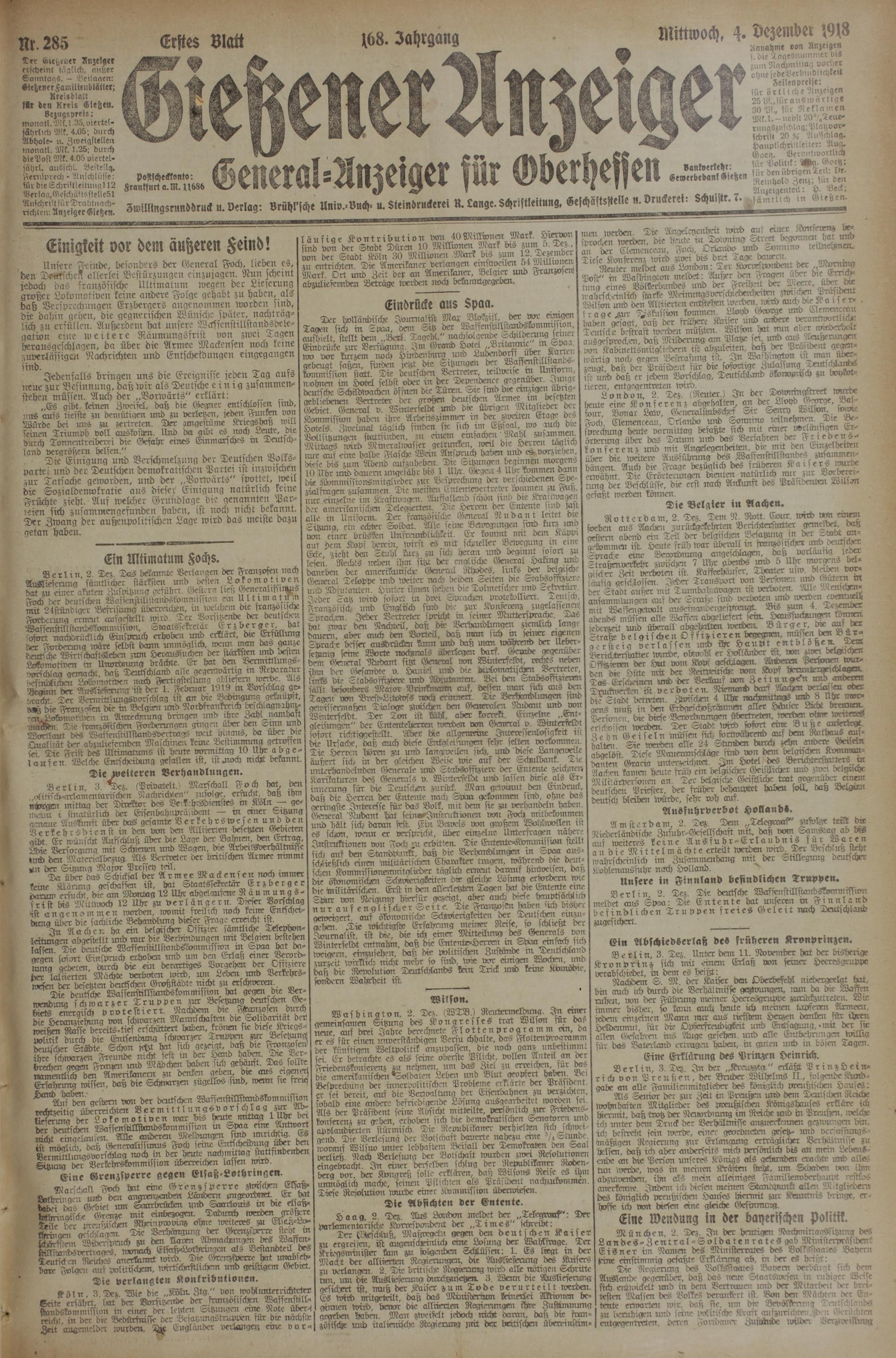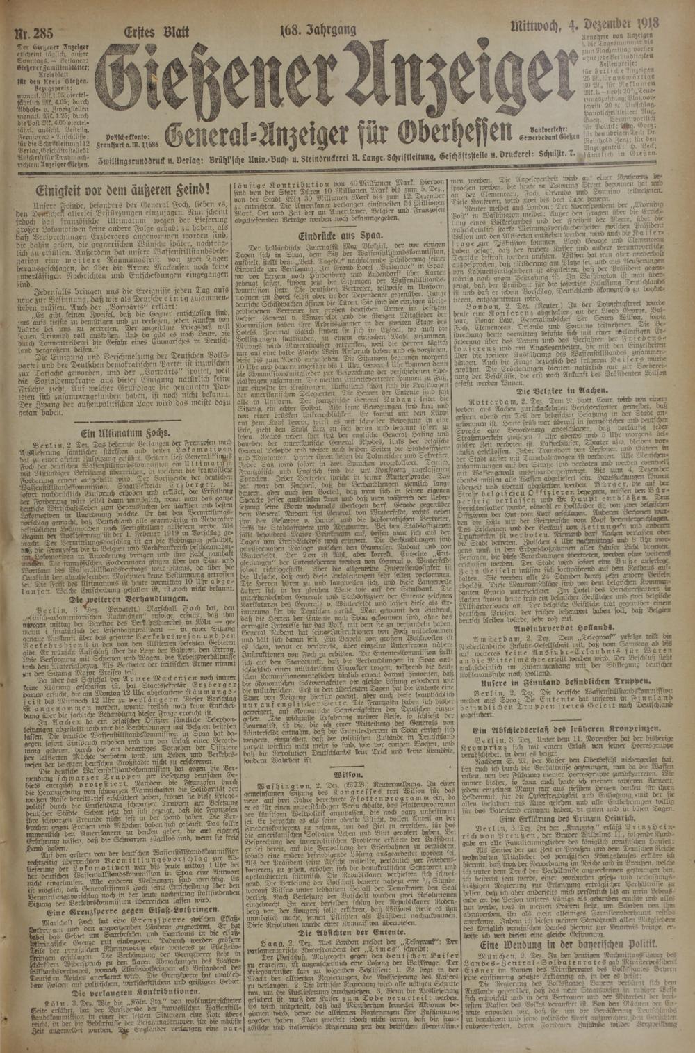 Gießener Anzeiger. 1868-1943