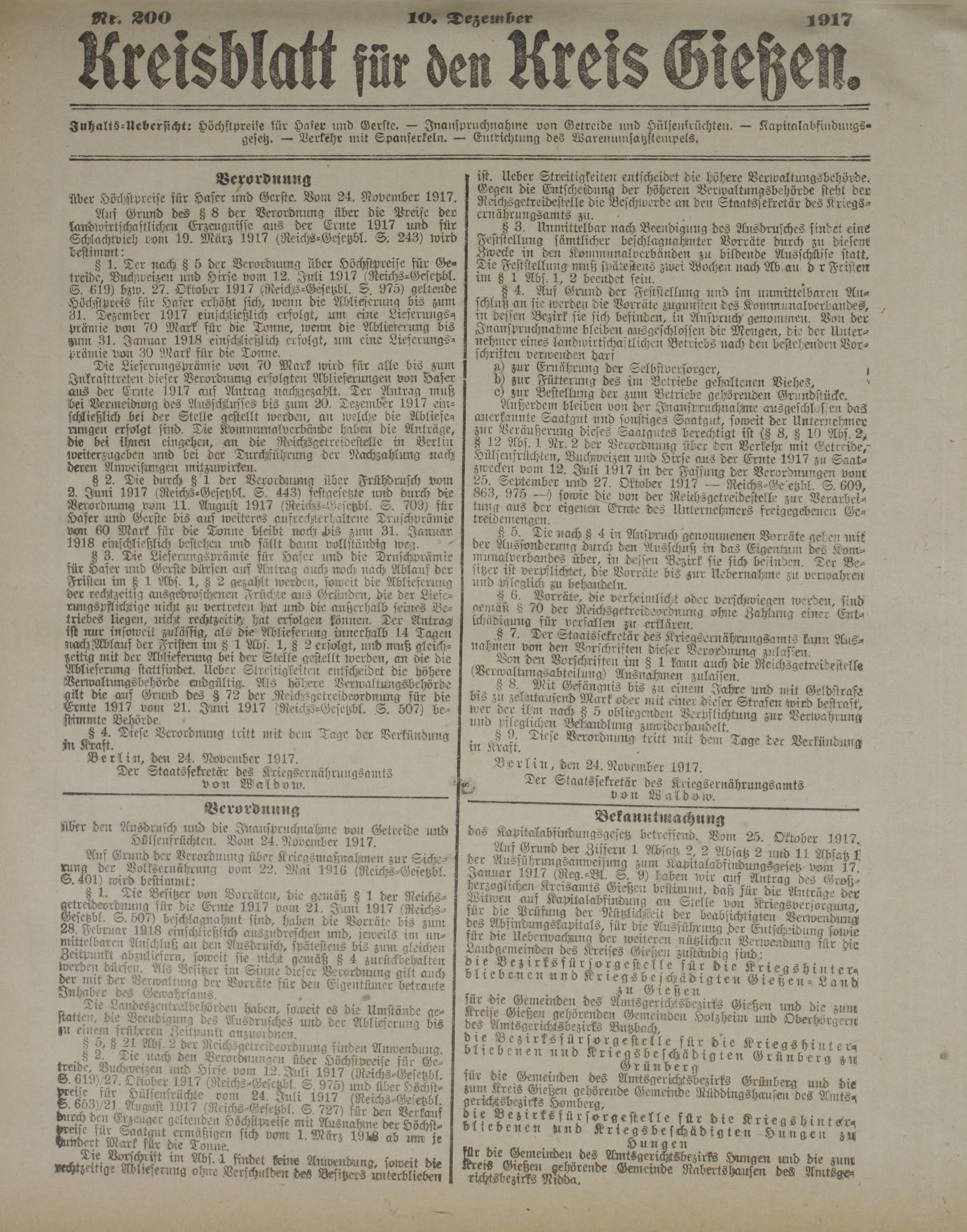 Regionale Zeitungen aus der Zeit des Ersten Weltkrieges
