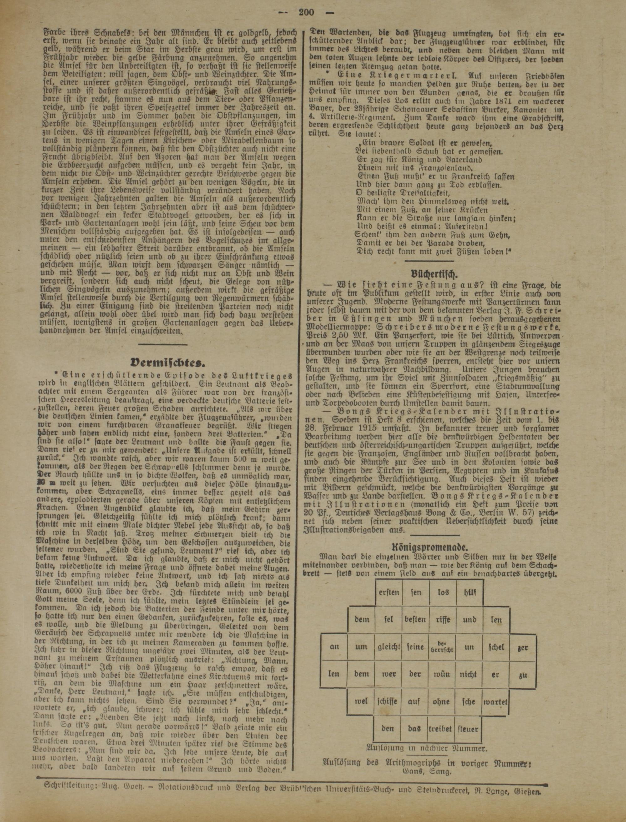 Regionale Zeitungen aus der Zeit des Ersten Weltkrieges