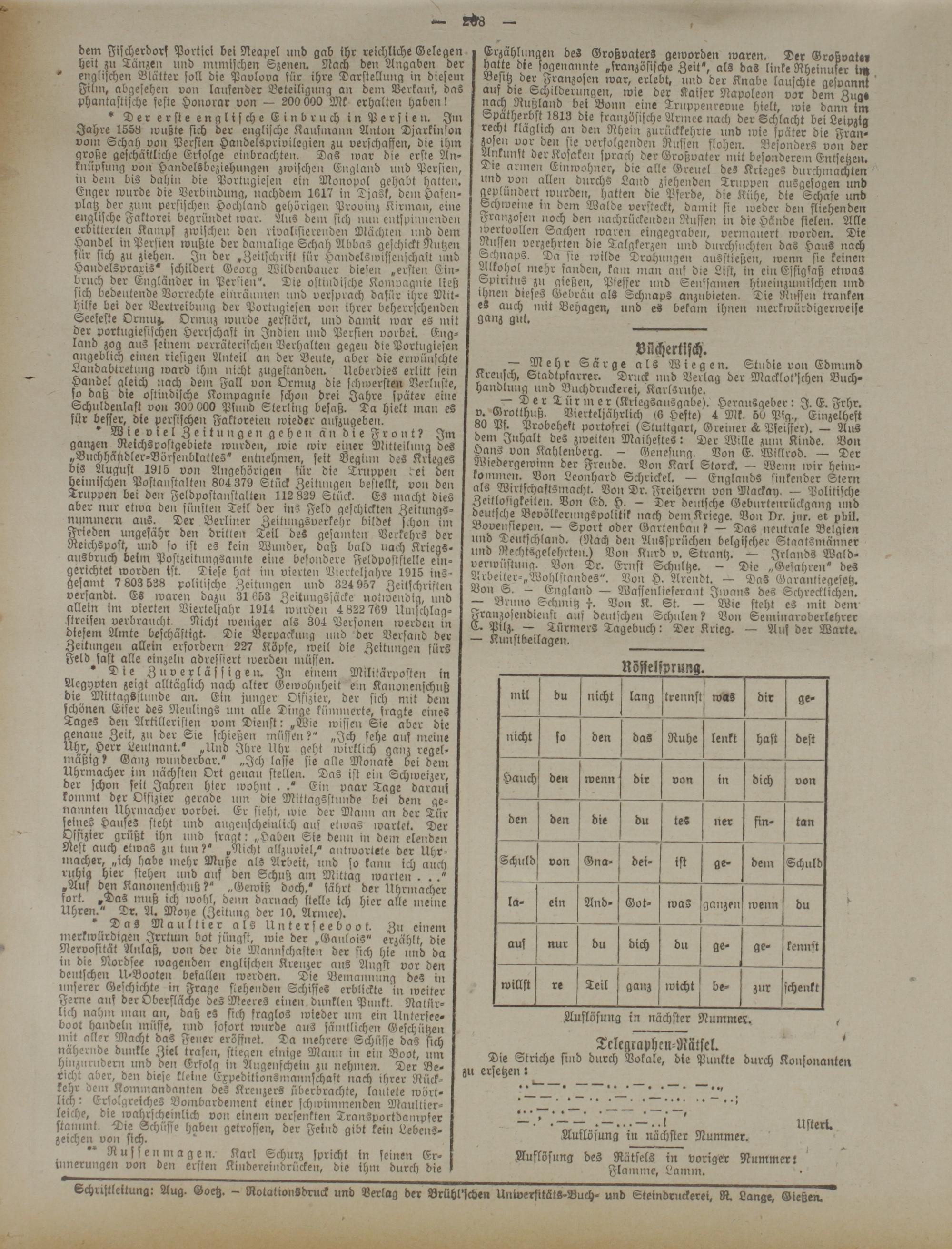 Regionale Zeitungen aus der Zeit des Ersten Weltkrieges