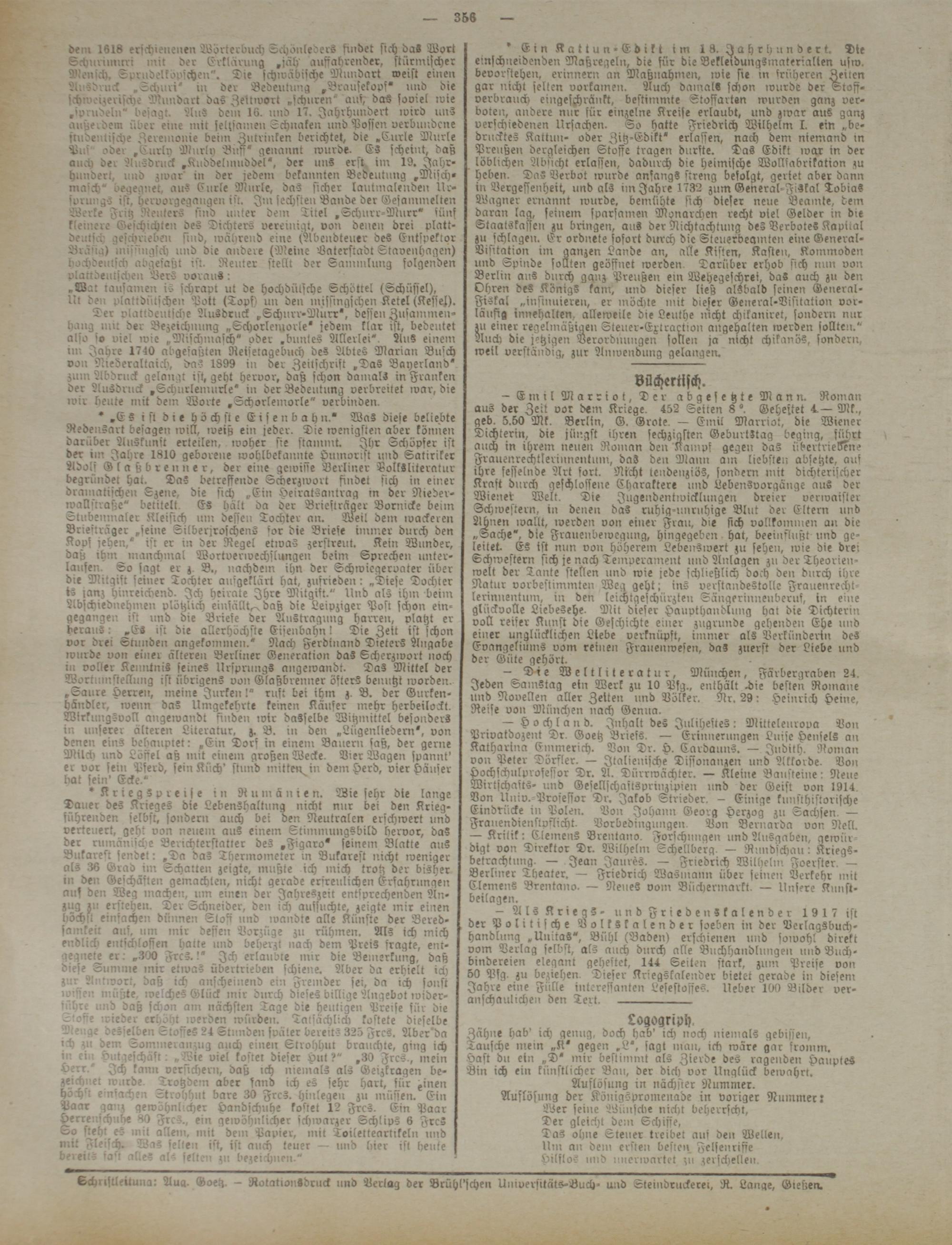 Regionale Zeitungen aus der Zeit des Ersten Weltkrieges