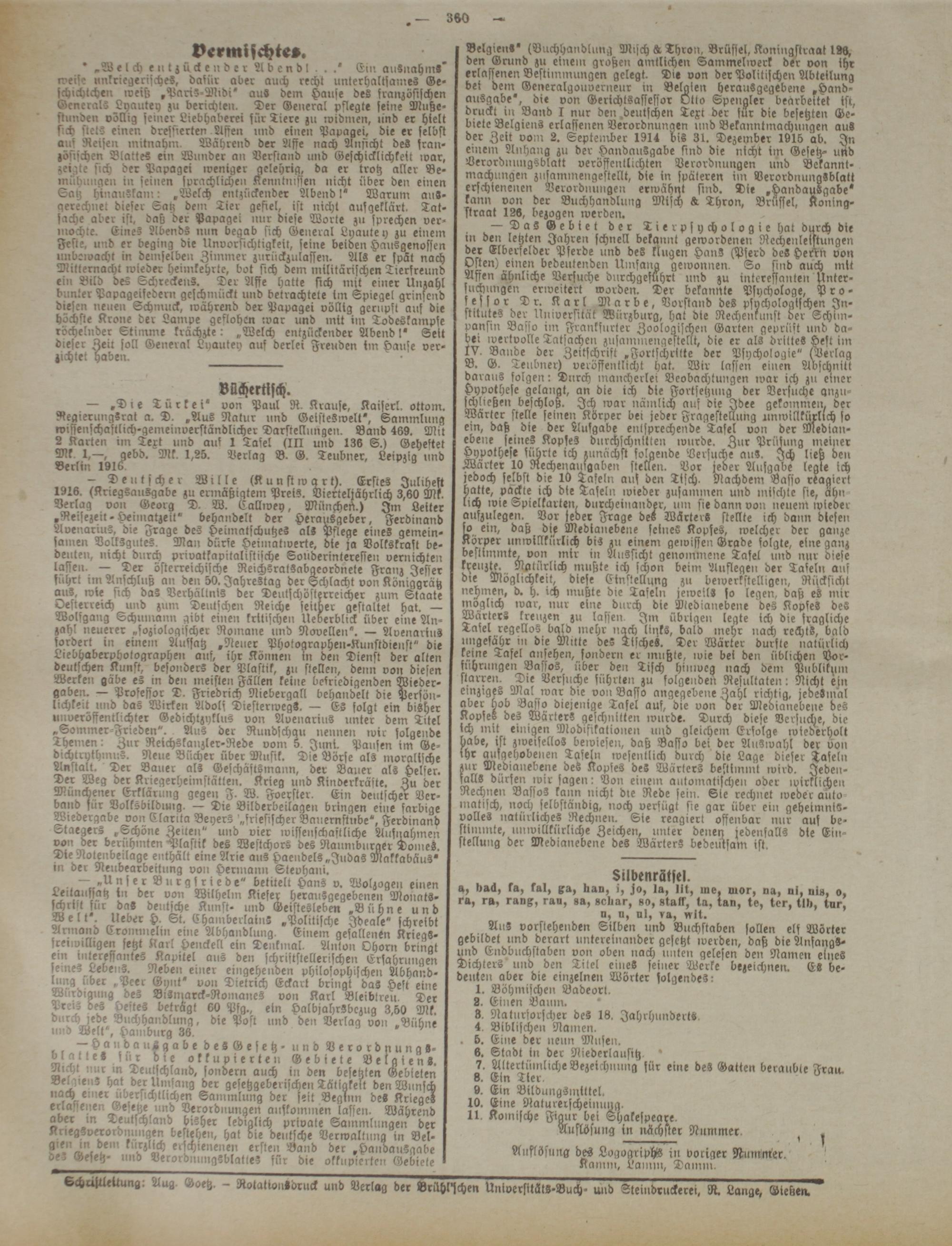 Regionale Zeitungen aus der Zeit des Ersten Weltkrieges