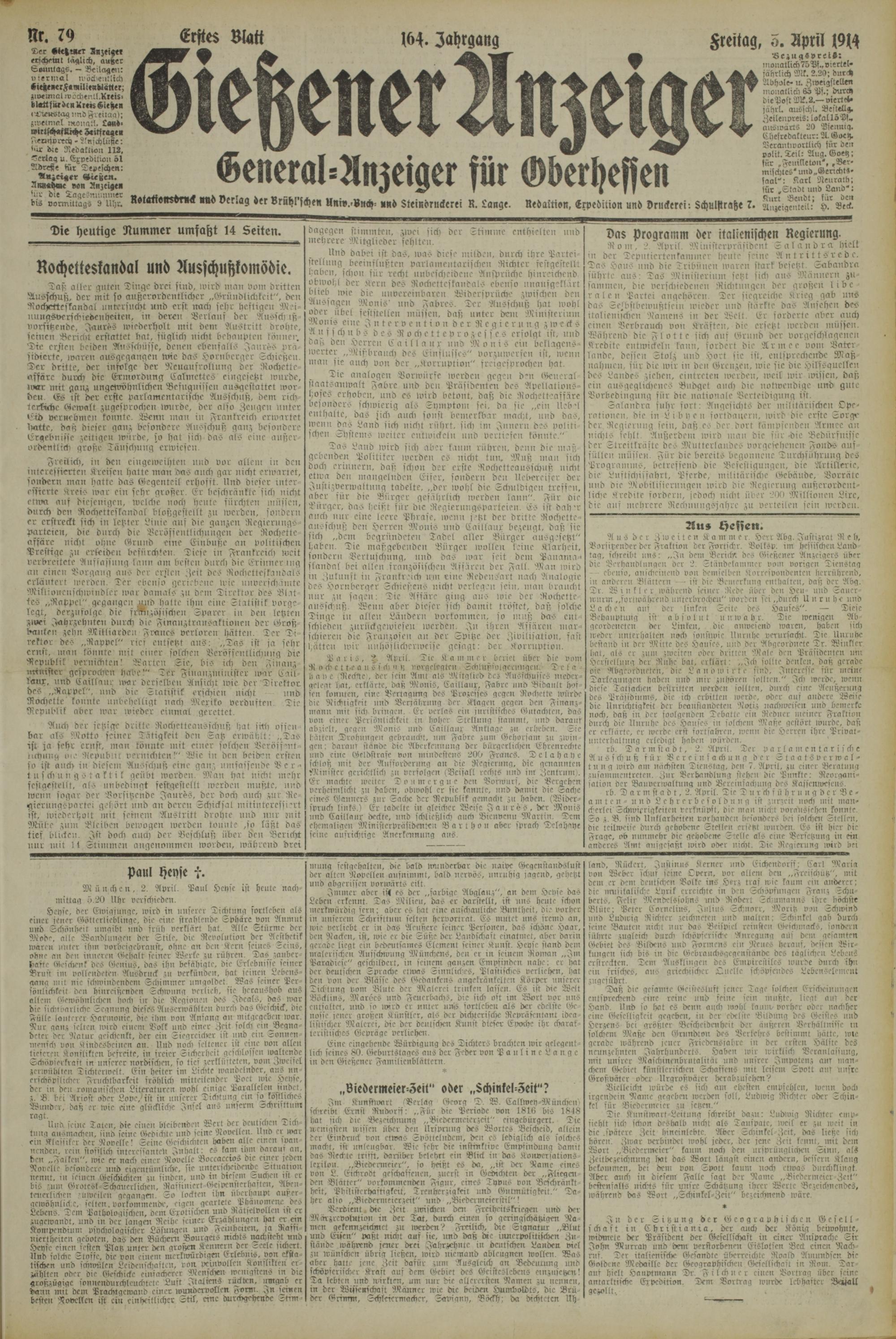 Gießener Anzeiger. 1868-1943