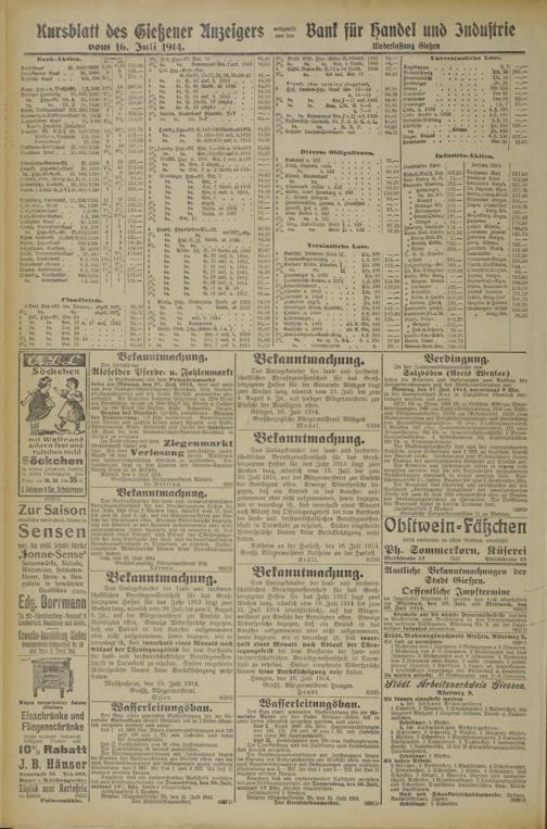 Regionale Zeitungen aus der Zeit des Ersten Weltkrieges