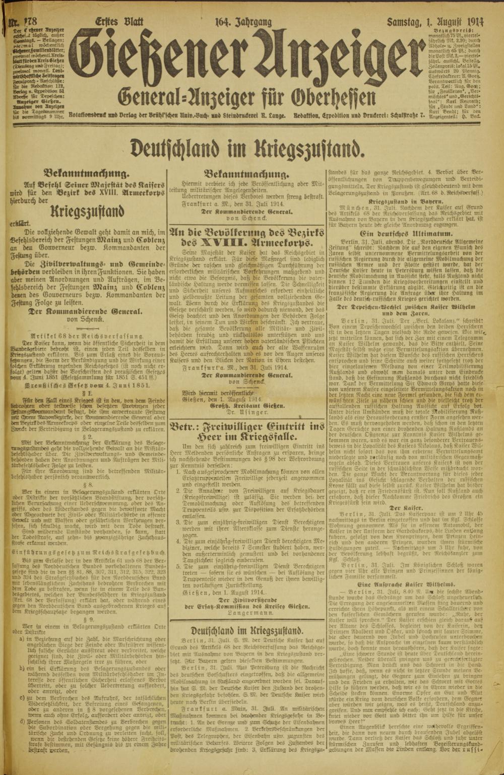 Der Erste Weltkrieg im Spiegel hessischer Regionalzeitungen