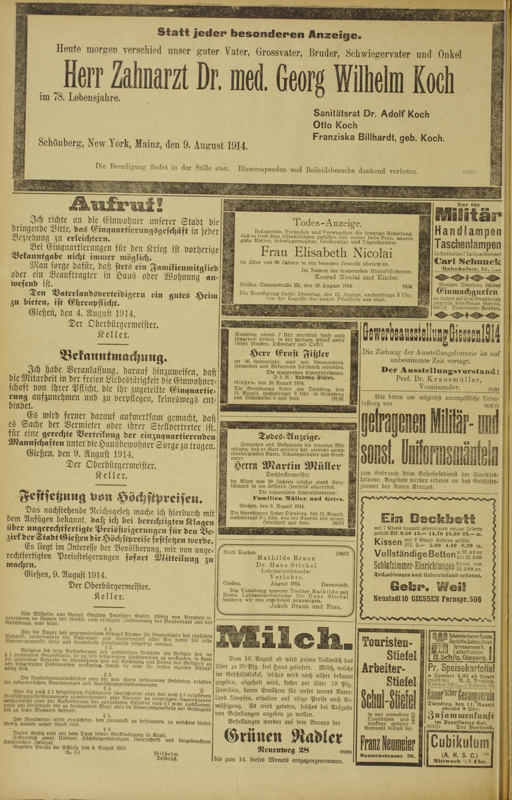 Regionale Zeitungen aus der Zeit des Ersten Weltkrieges