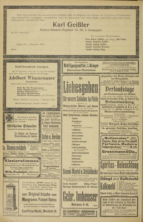 Regionale Zeitungen aus der Zeit des Ersten Weltkrieges