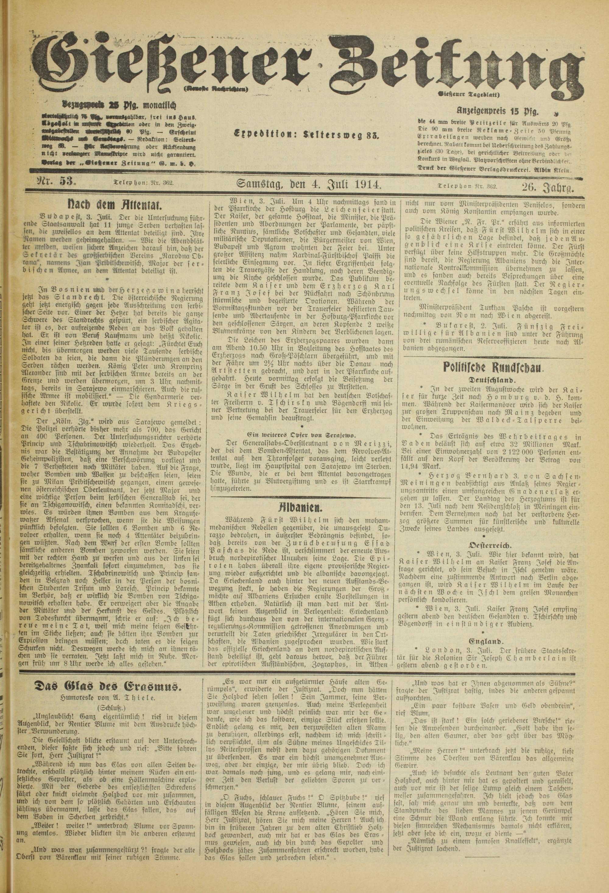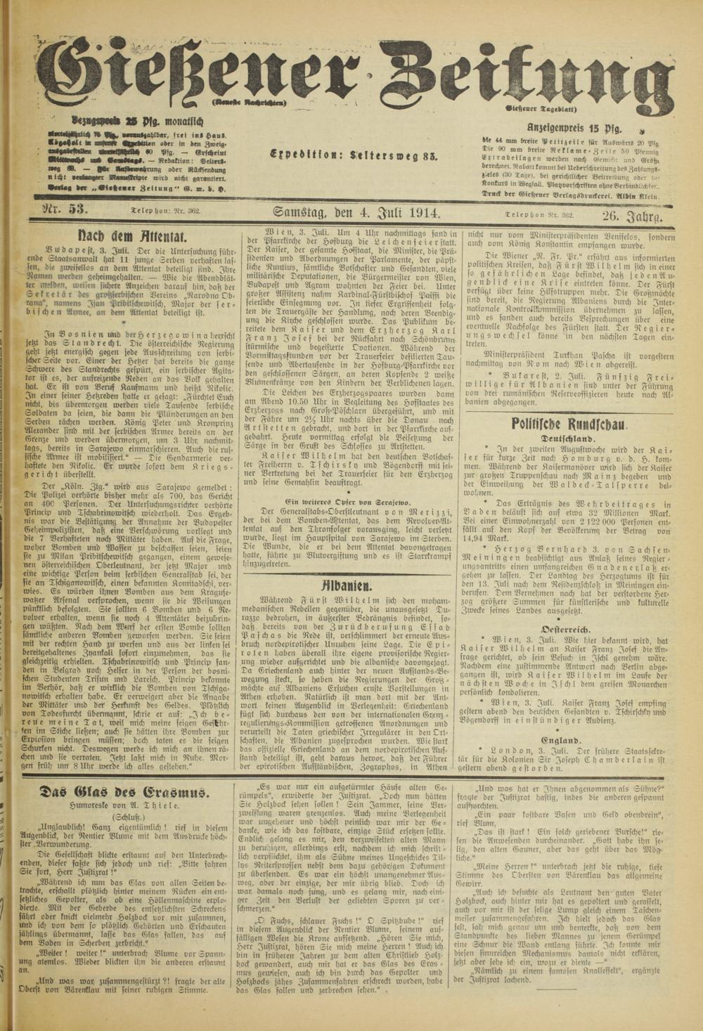 Gießener Zeitung. 1914-1918