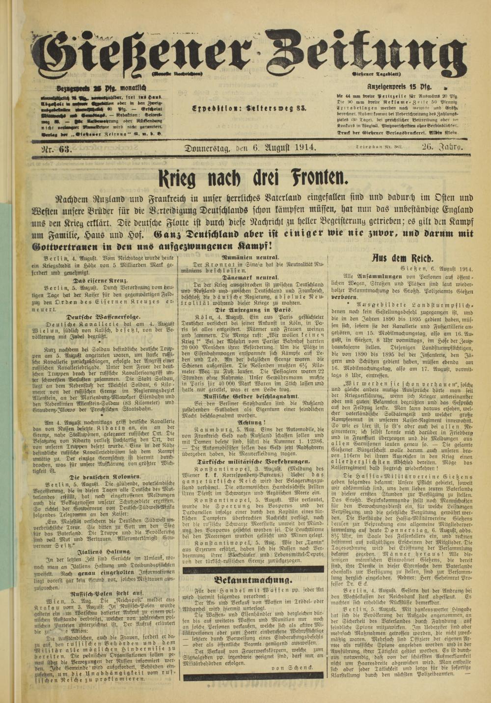 Der Erste Weltkrieg im Spiegel hessischer Regionalzeitungen