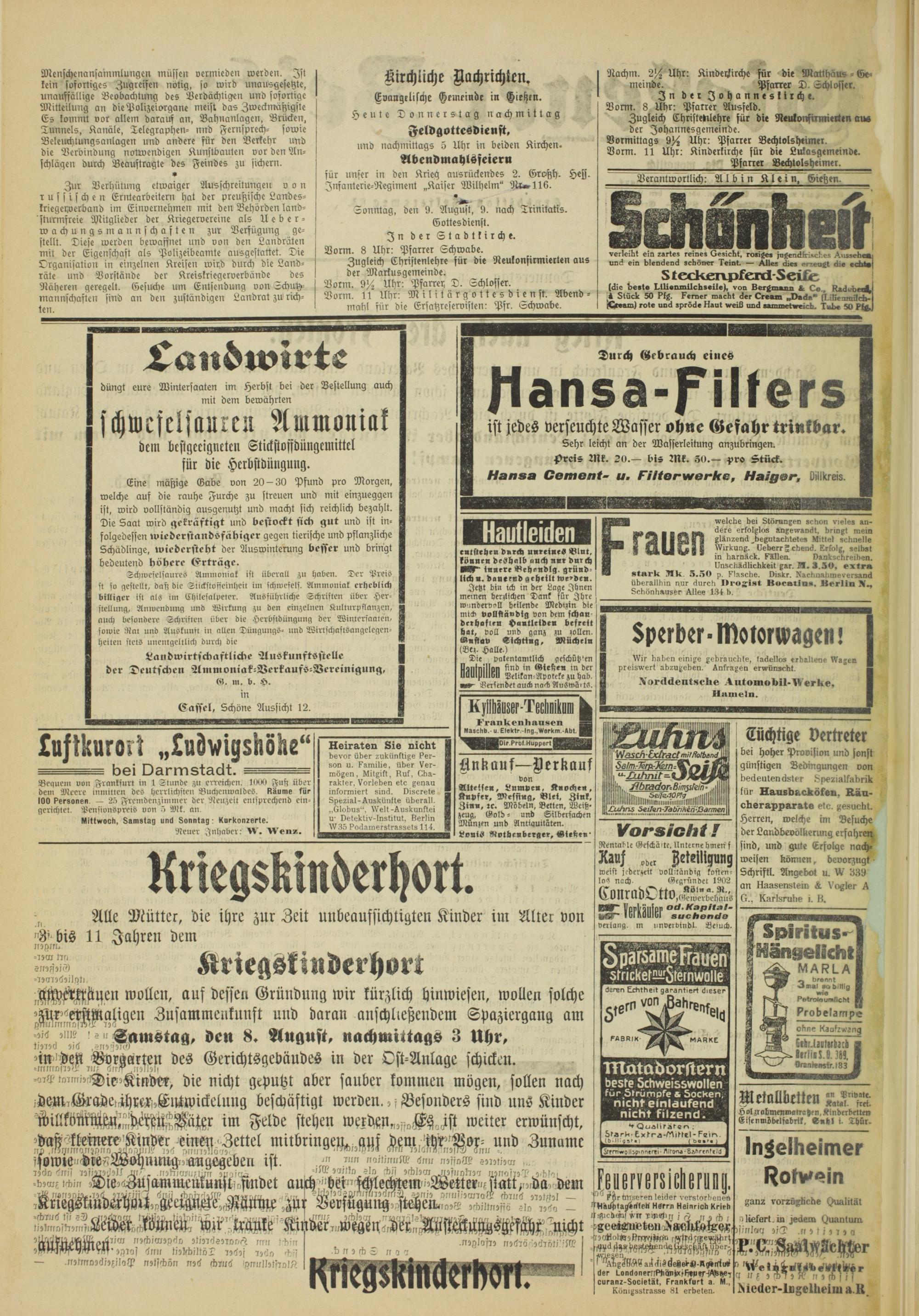 Regionale Zeitungen aus der Zeit des Ersten Weltkrieges