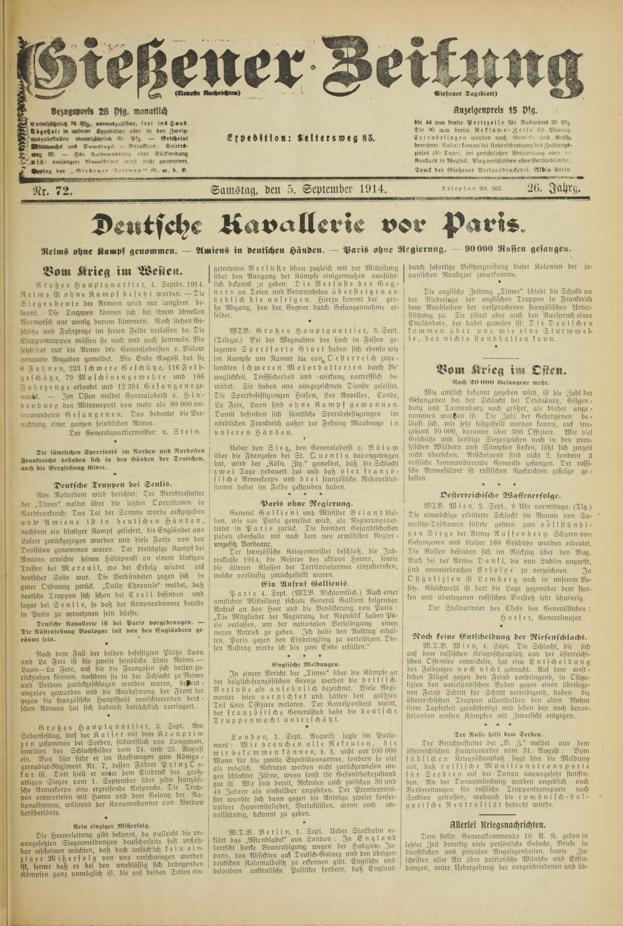 Der Erste Weltkrieg im Spiegel hessischer Regionalzeitungen