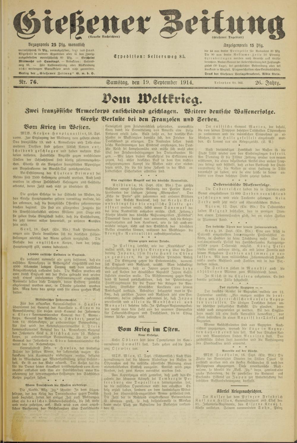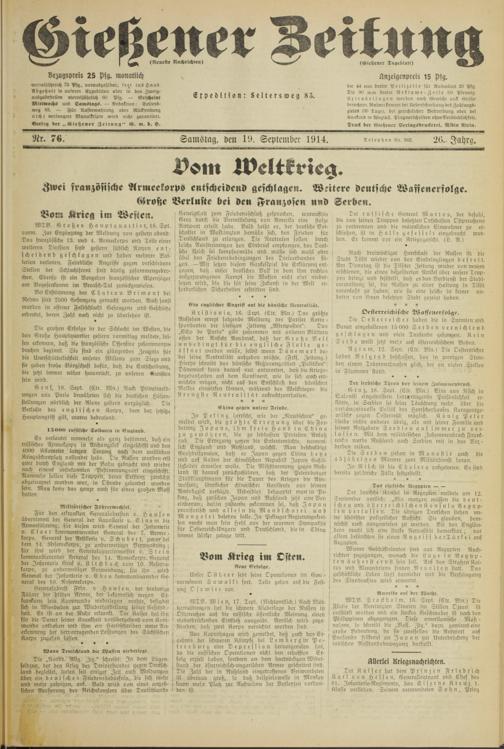 Der Erste Weltkrieg im Spiegel hessischer Regionalzeitungen