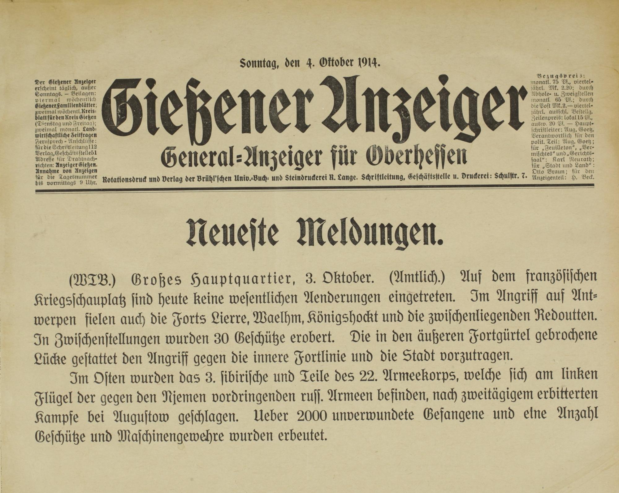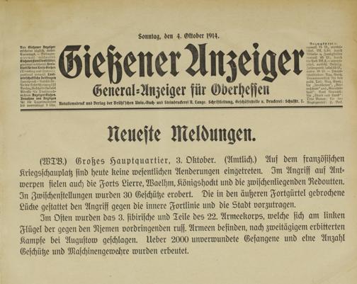 Der Erste Weltkrieg im Spiegel hessischer Regionalzeitungen