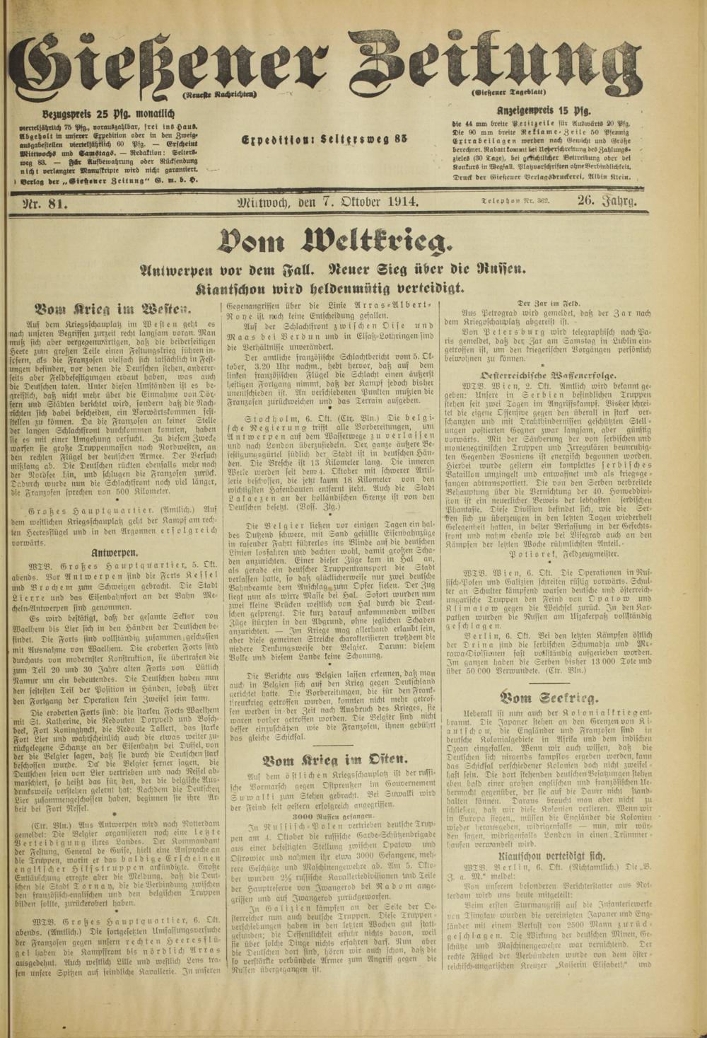 Gießener Zeitung. 1914-1918