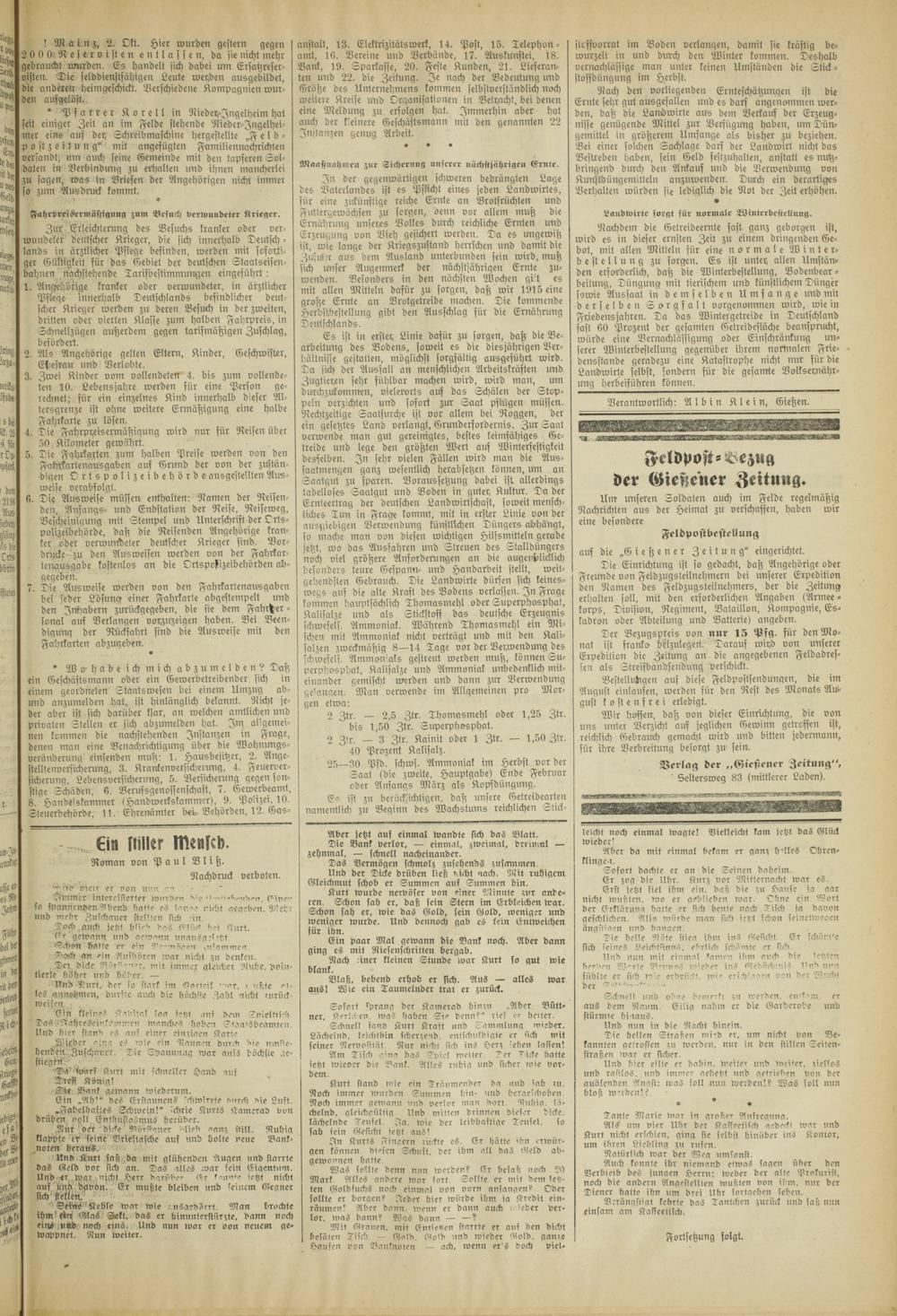 Gießener Zeitung. 1914-1918