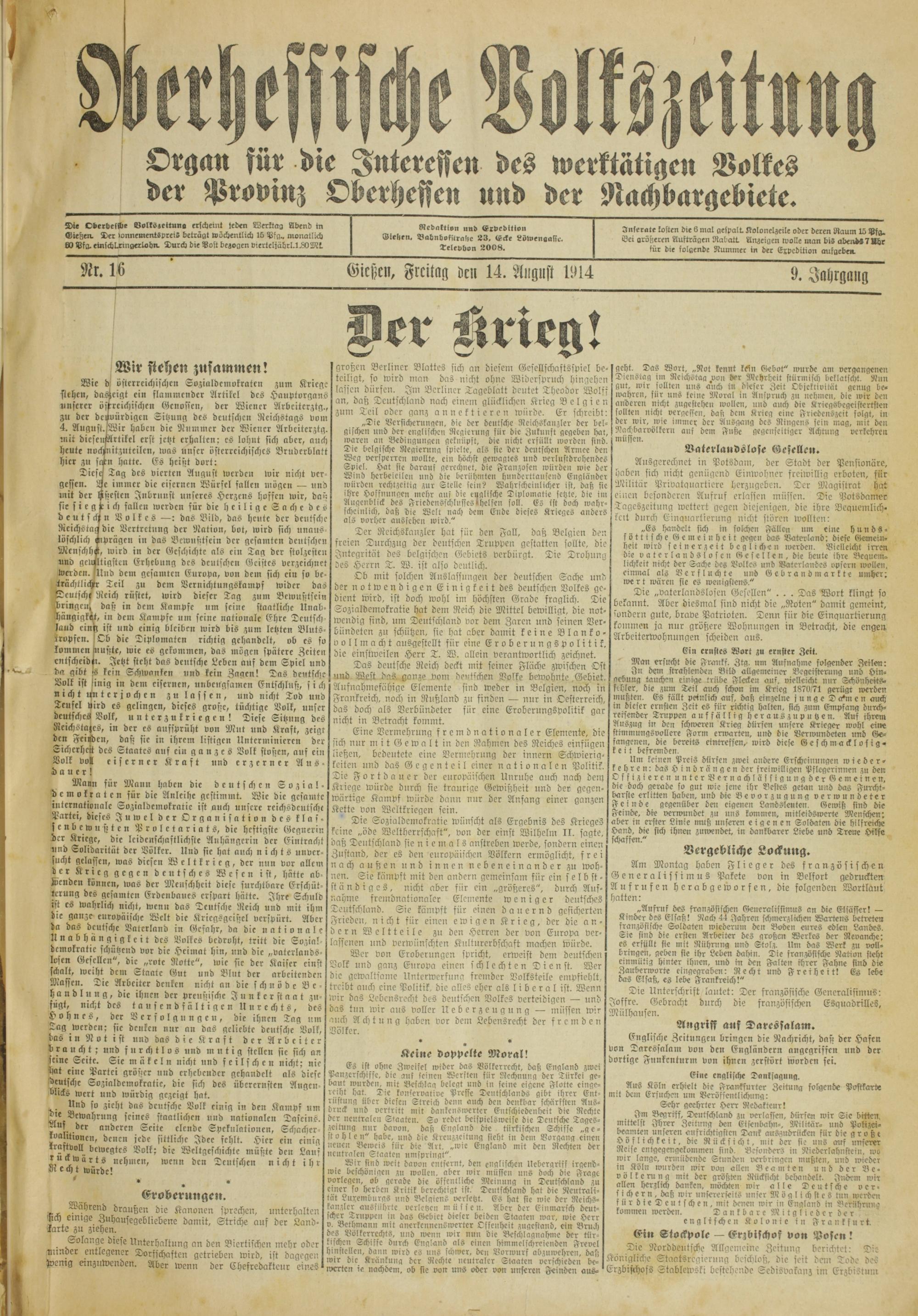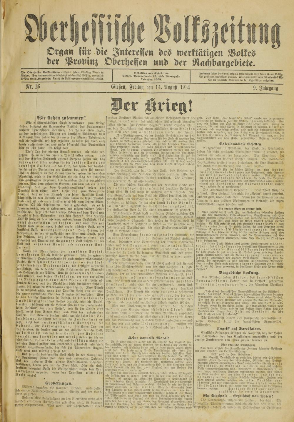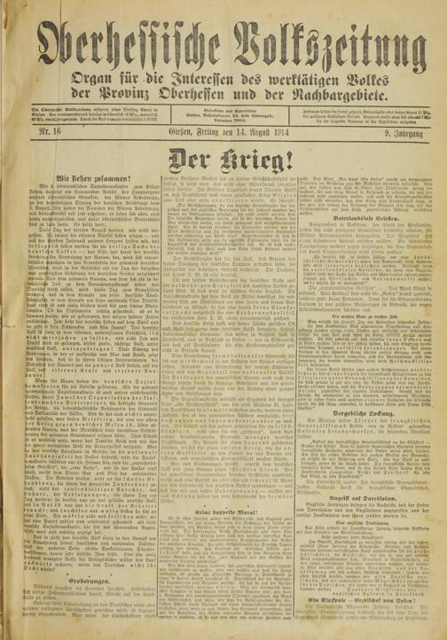 Der Erste Weltkrieg im Spiegel hessischer Regionalzeitungen