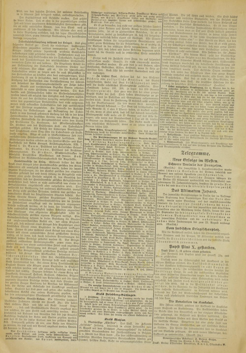 Oberhessische Volkszeitung. 1914-1923