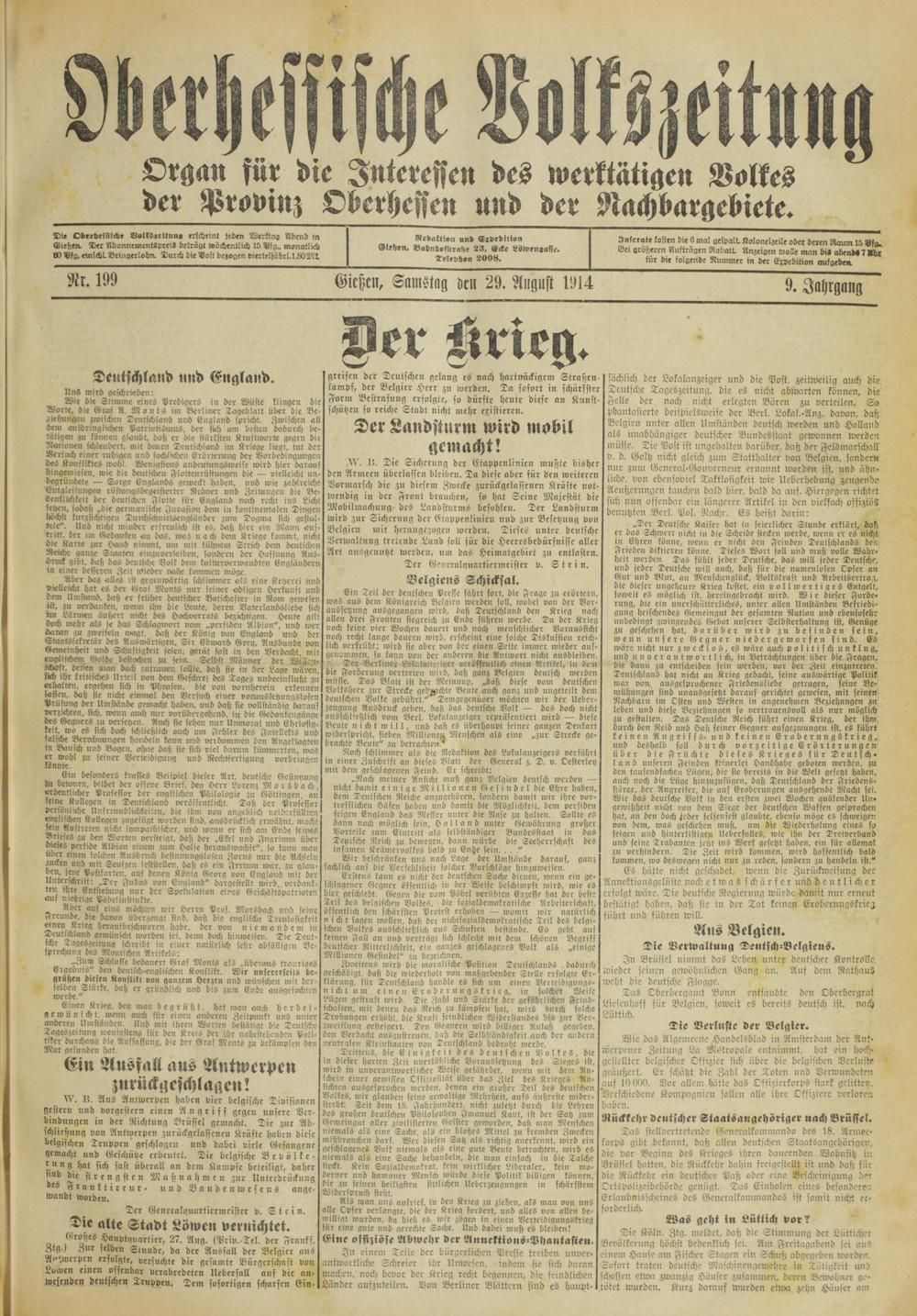 Der Erste Weltkrieg im Spiegel hessischer Regionalzeitungen