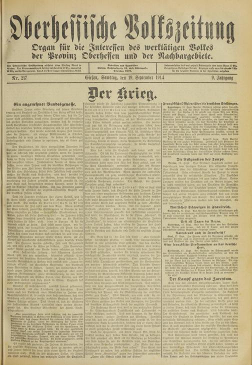 Oberhessische Volkszeitung. 1914-1923