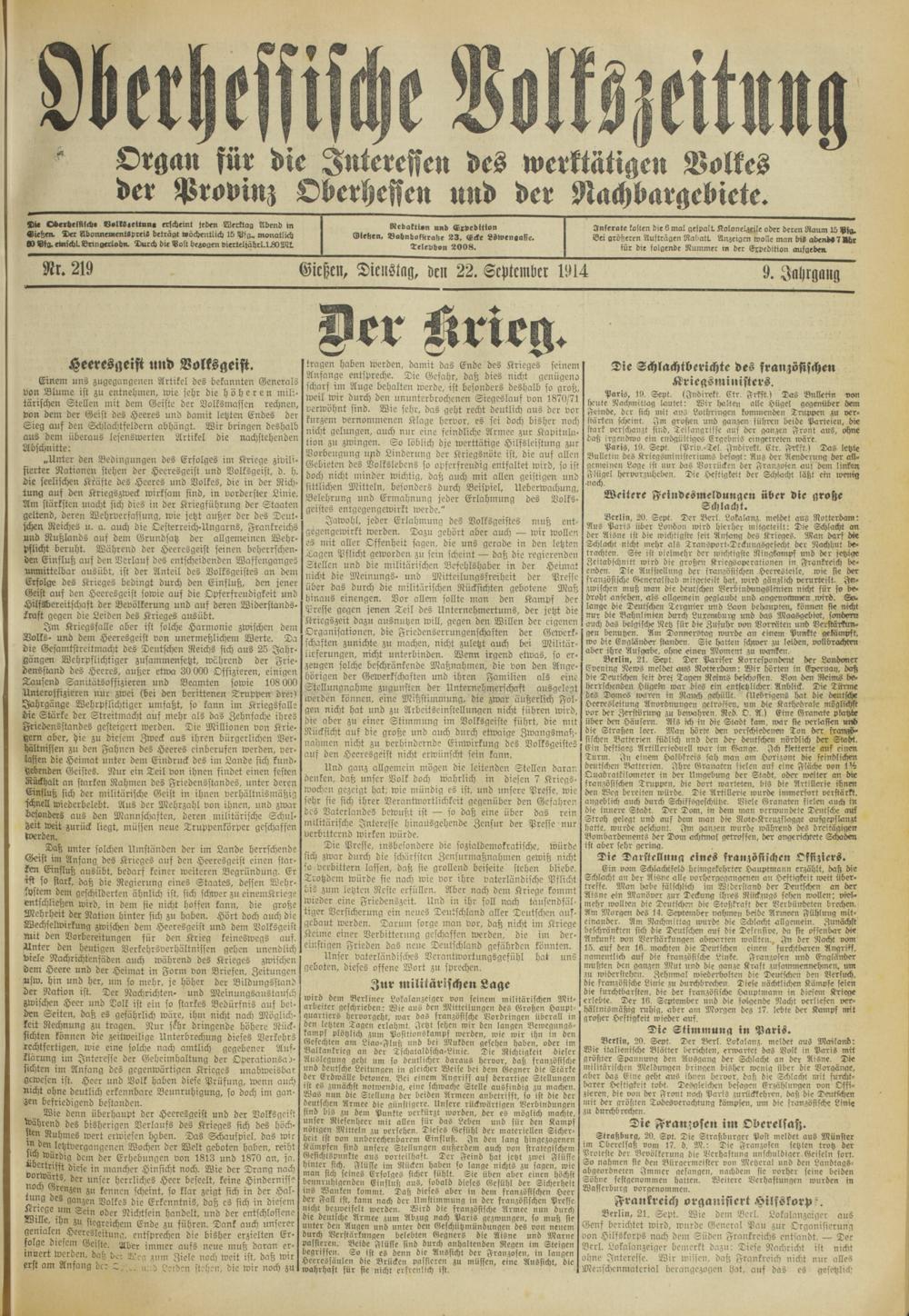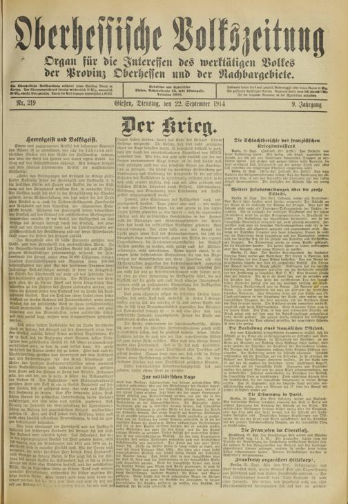 Der Erste Weltkrieg im Spiegel hessischer Regionalzeitungen