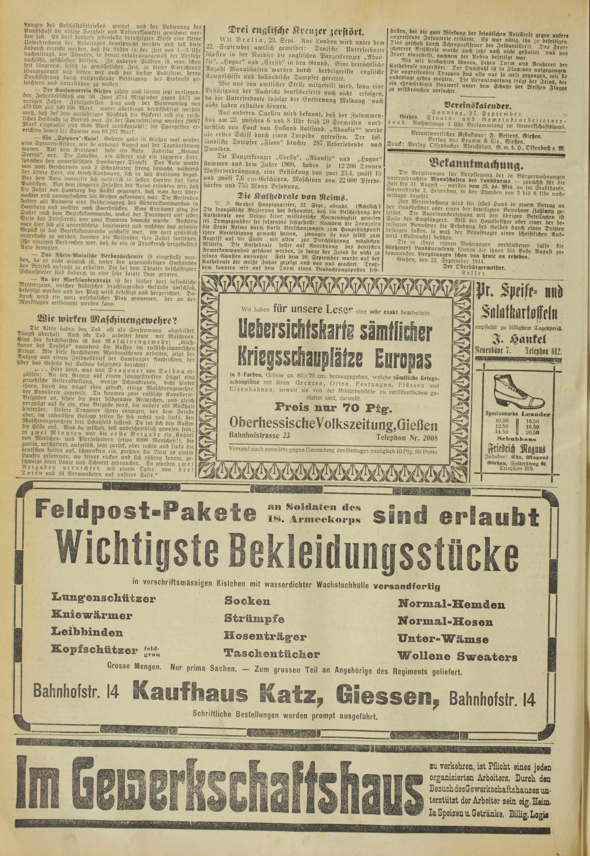Oberhessische Volkszeitung. 1914-1923