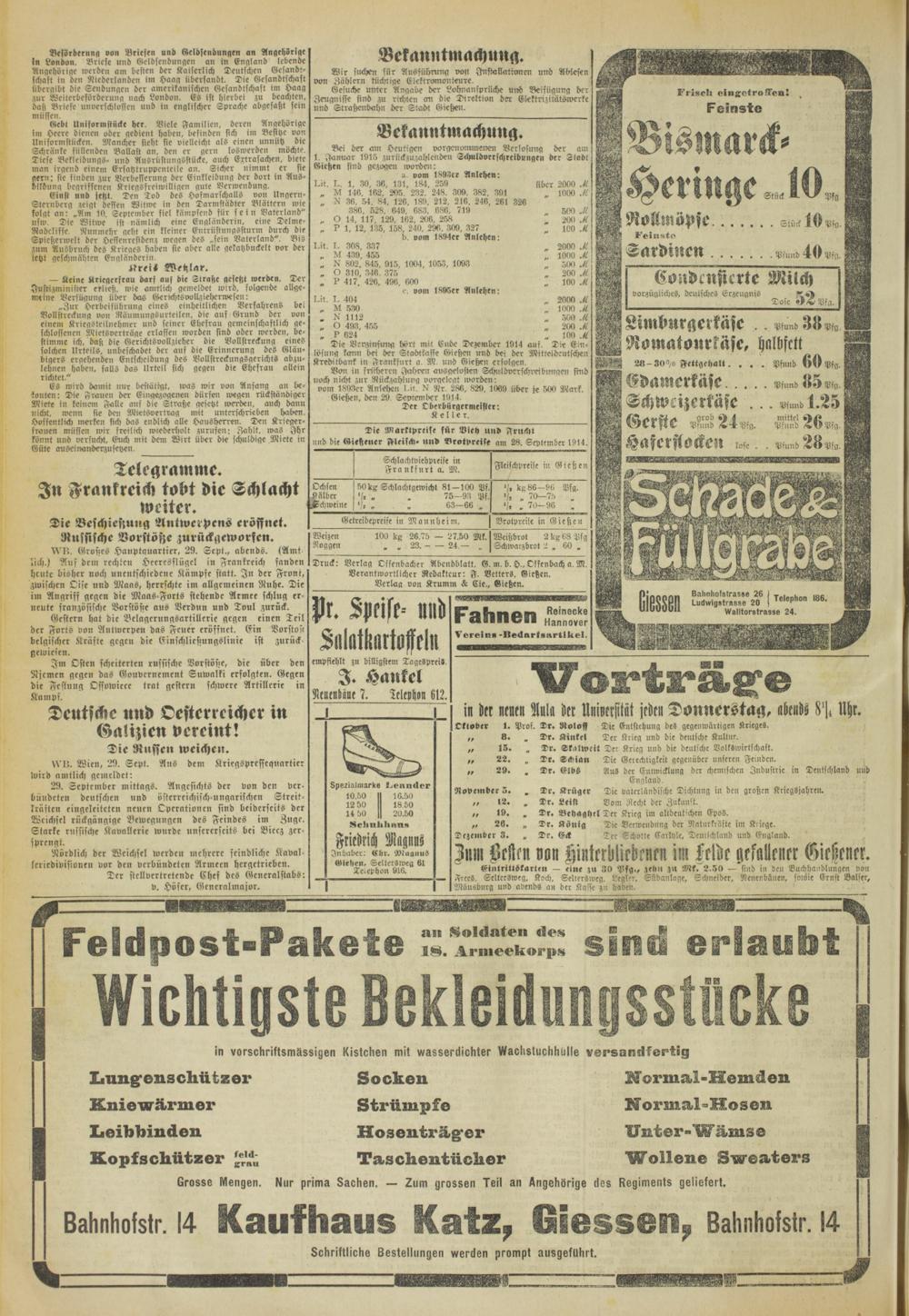 Oberhessische Volkszeitung. 1914-1923