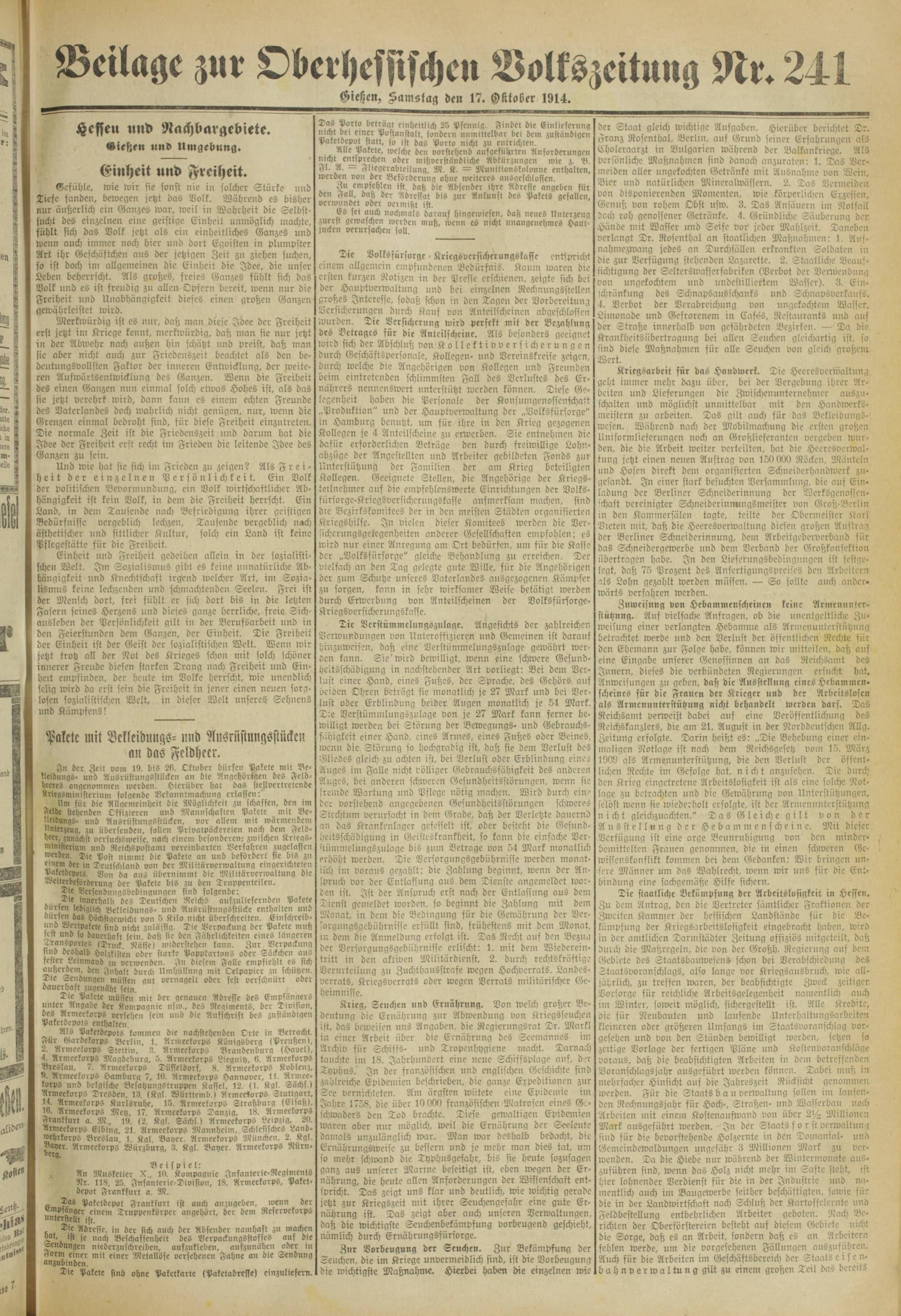 Oberhessische Volkszeitung. 1914-1923