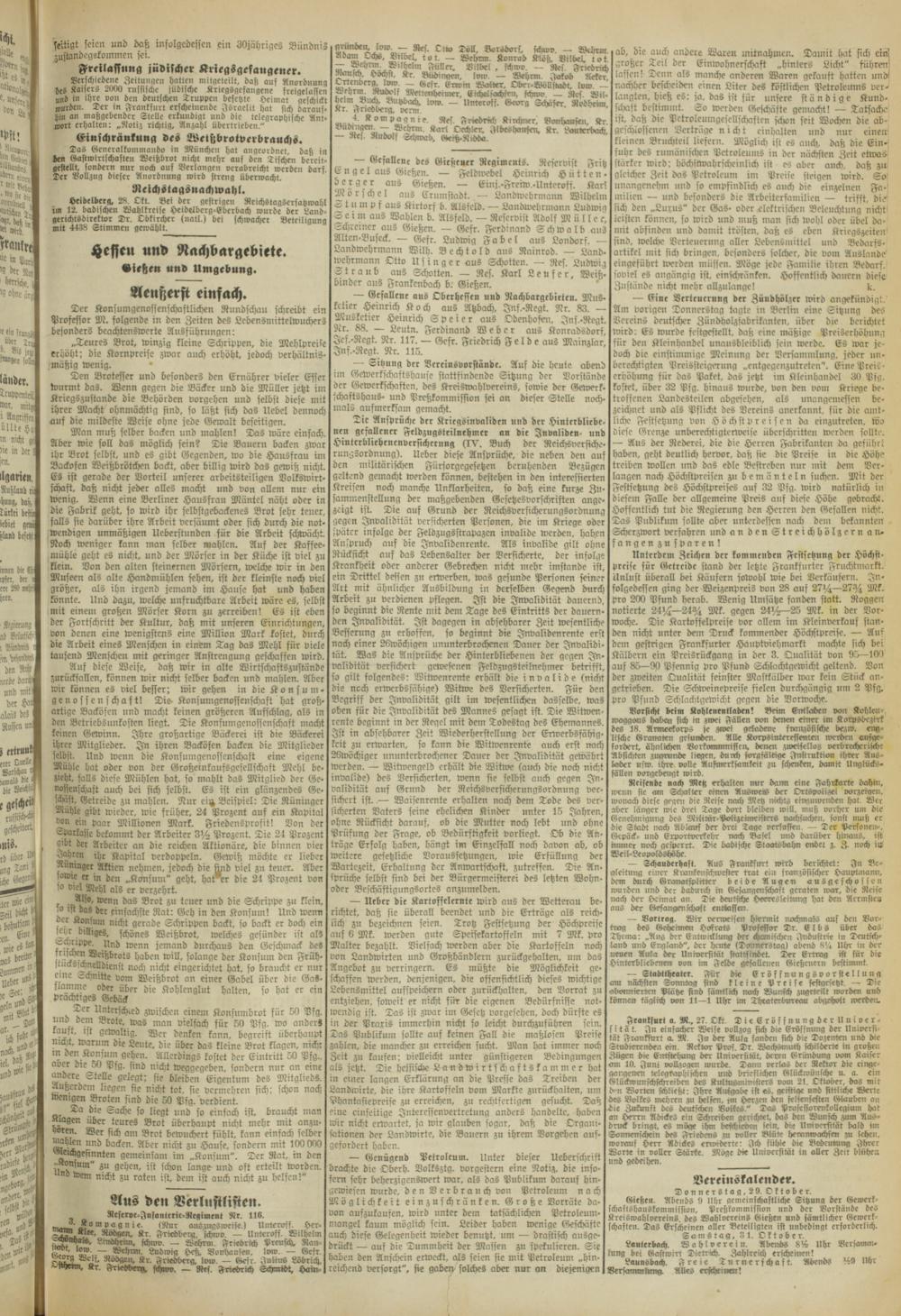 Oberhessische Volkszeitung. 1914-1923
