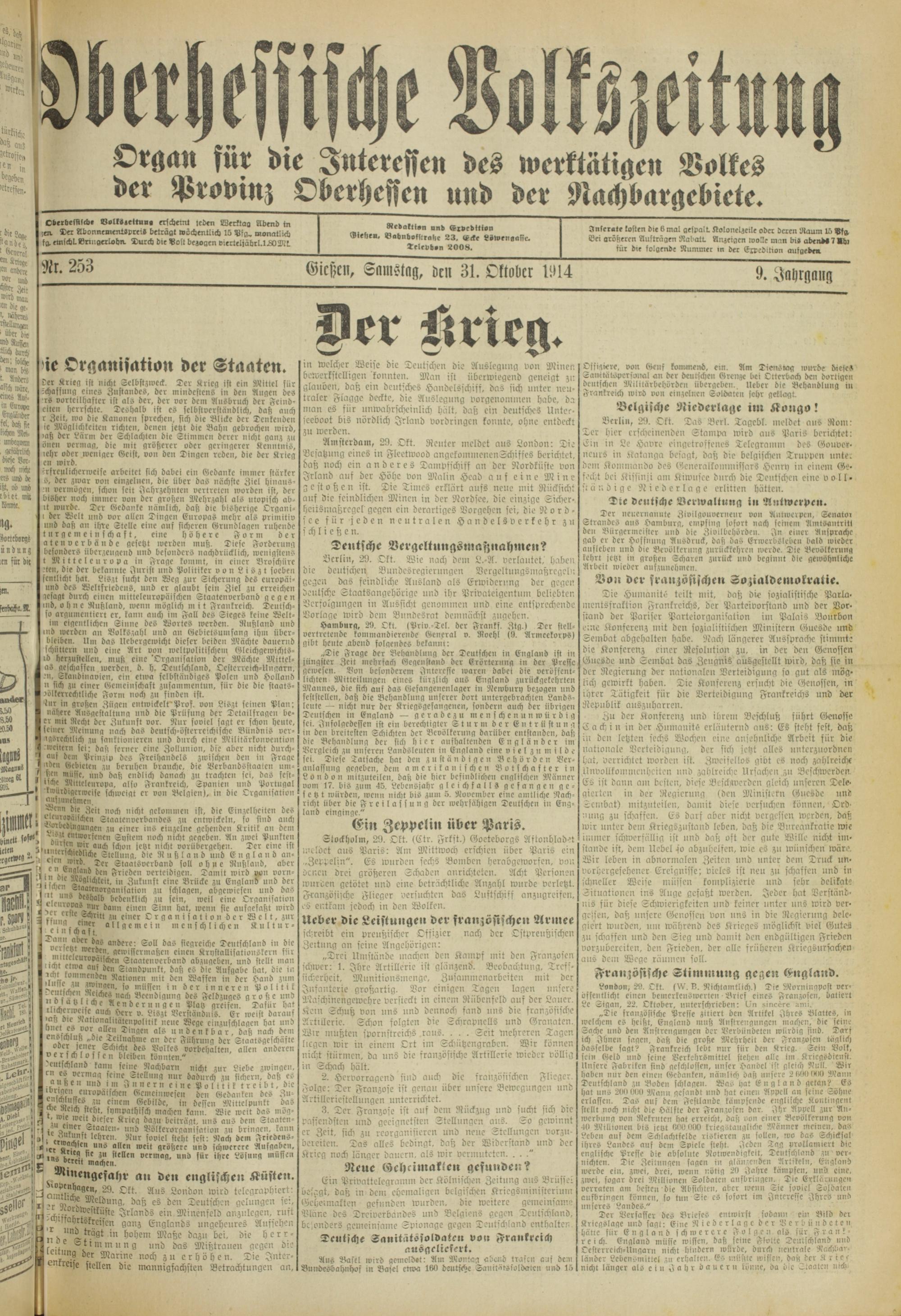 Oberhessische Volkszeitung. 1914-1923