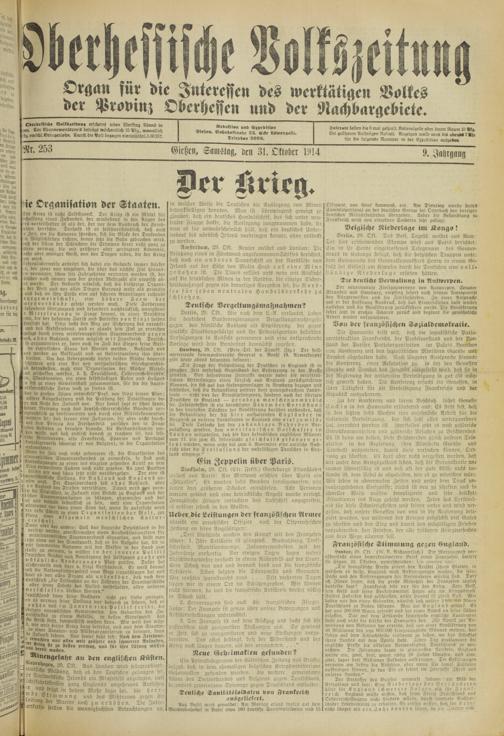 Der Erste Weltkrieg im Spiegel hessischer Regionalzeitungen
