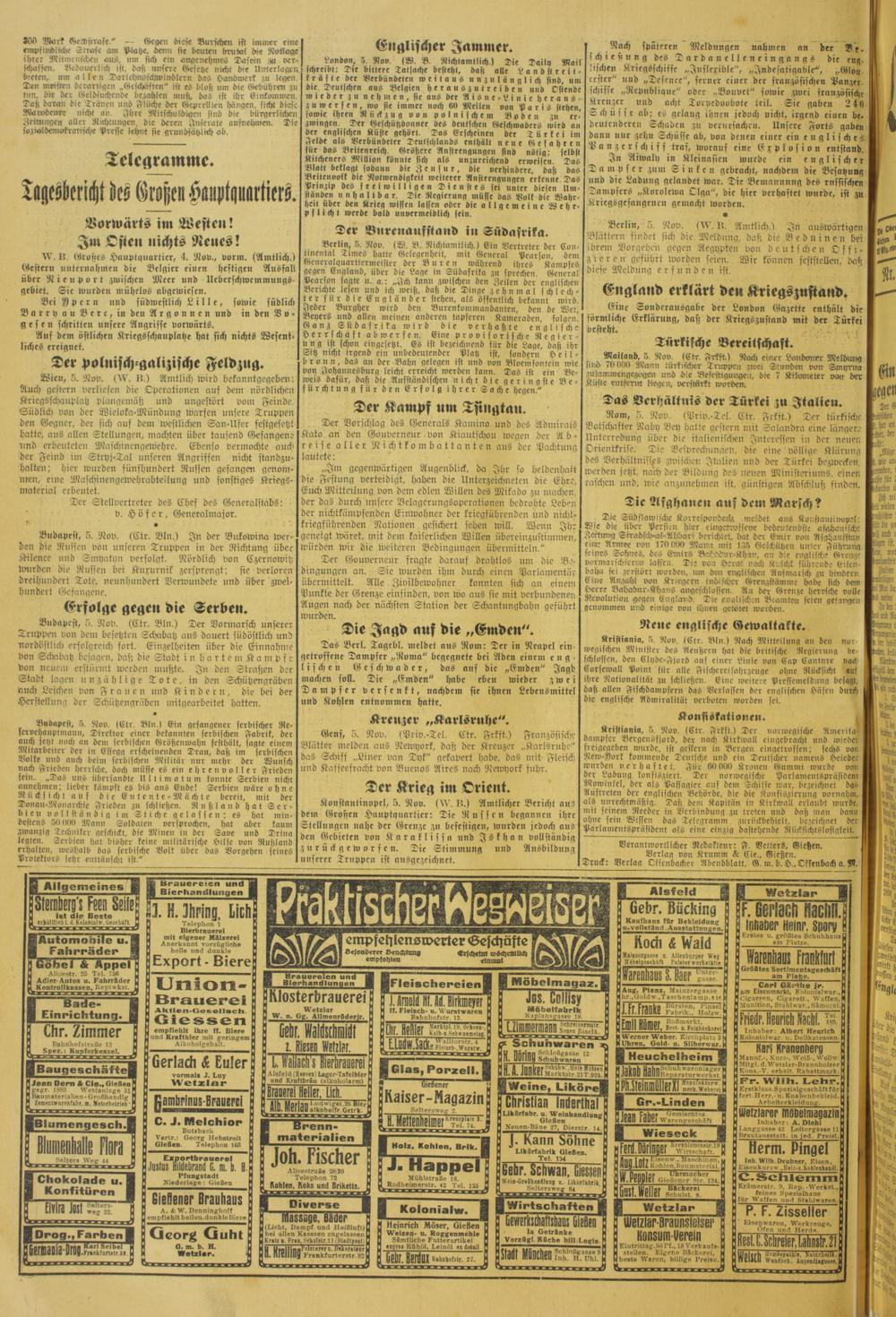 Oberhessische Volkszeitung. 1914-1923