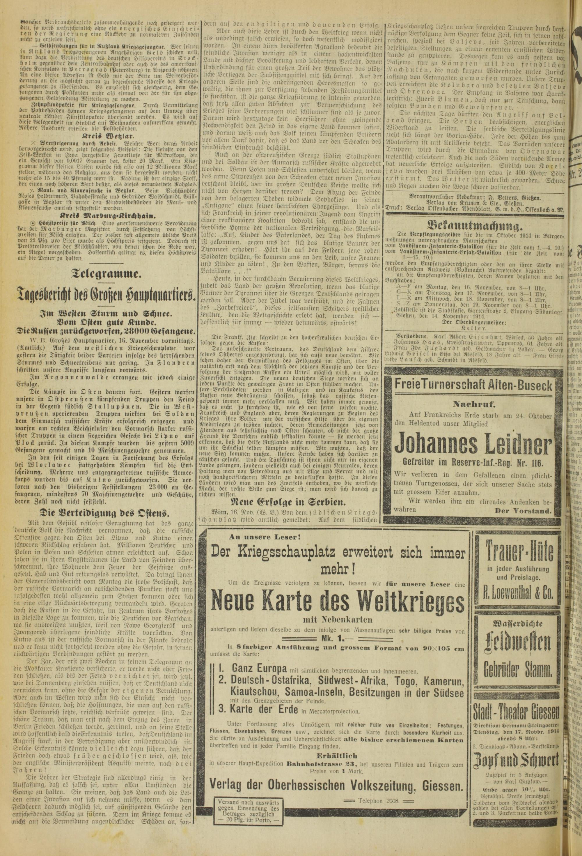 Oberhessische Volkszeitung. 1914-1923