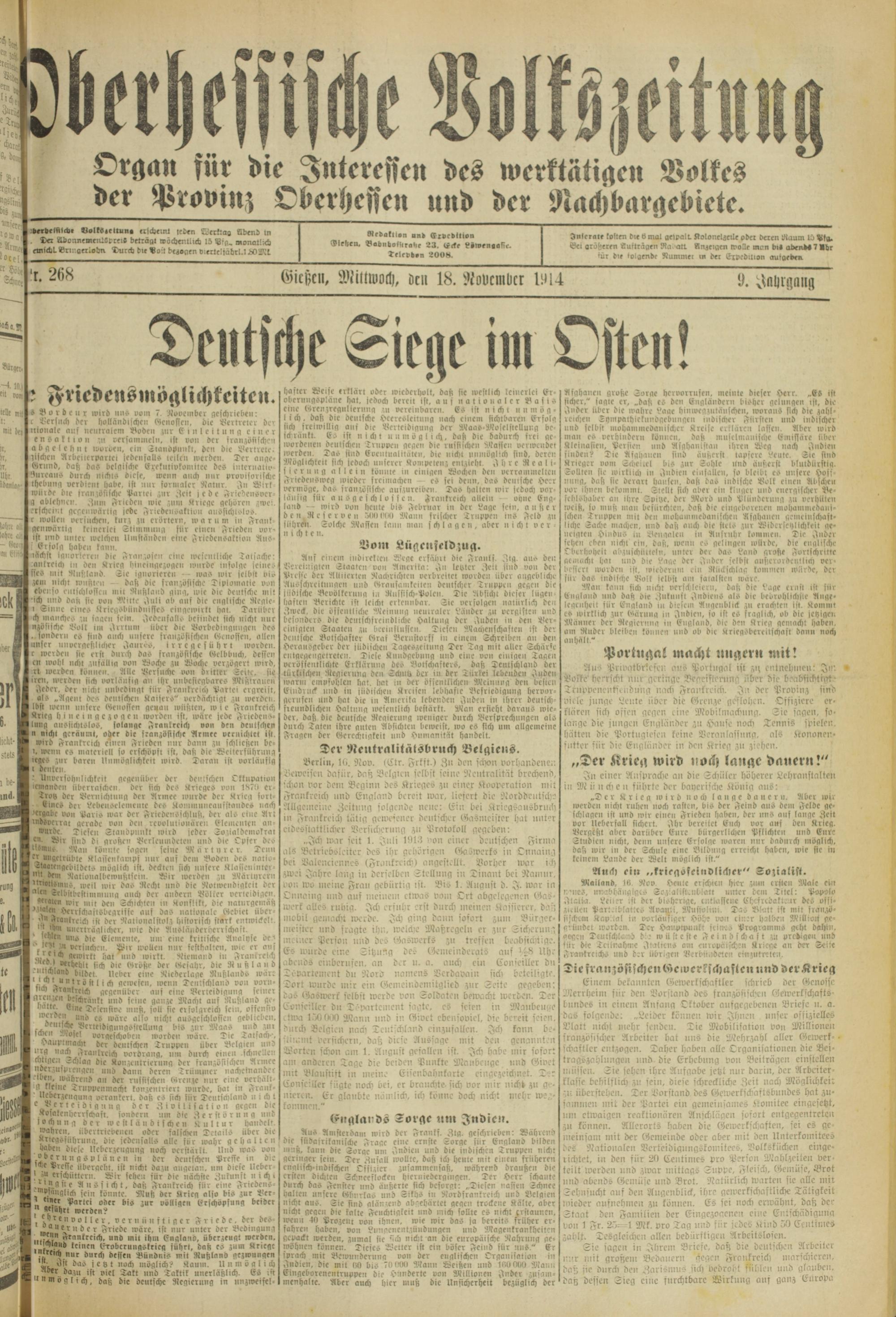 Oberhessische Volkszeitung. 1914-1923