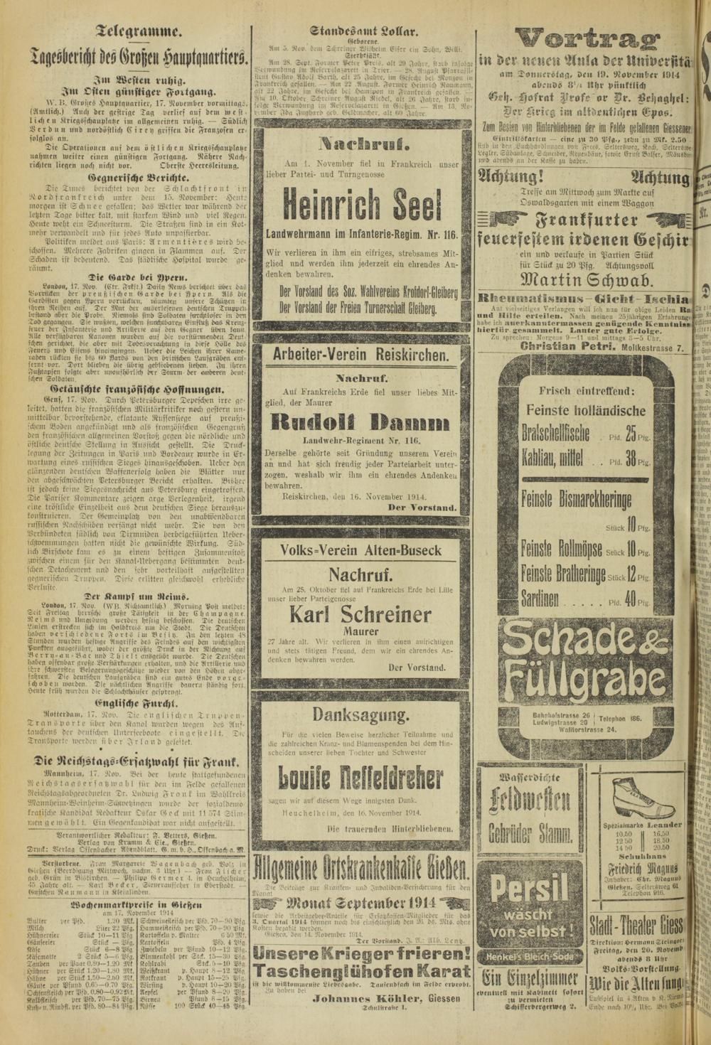 Oberhessische Volkszeitung. 1914-1923