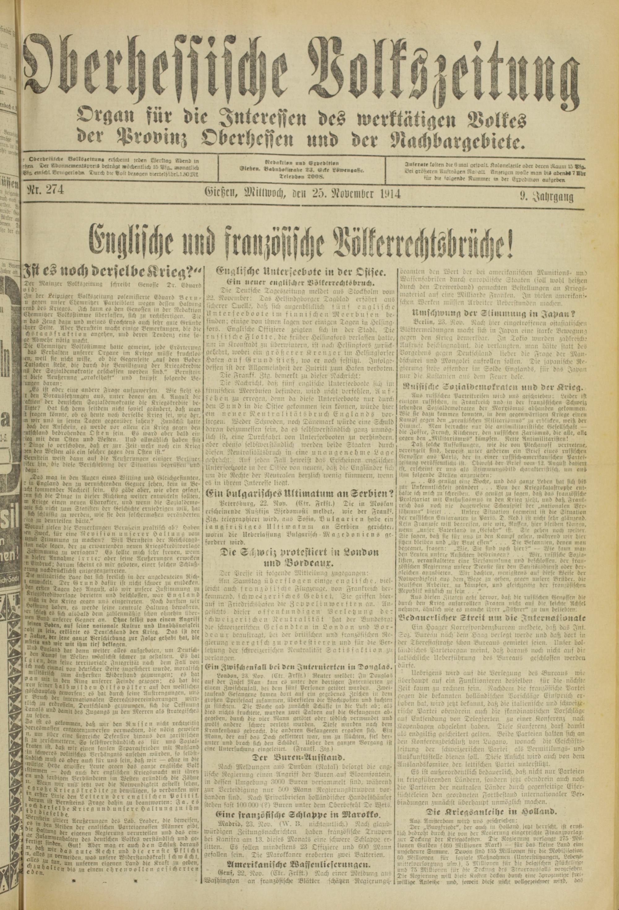 Oberhessische Volkszeitung. 1914-1923
