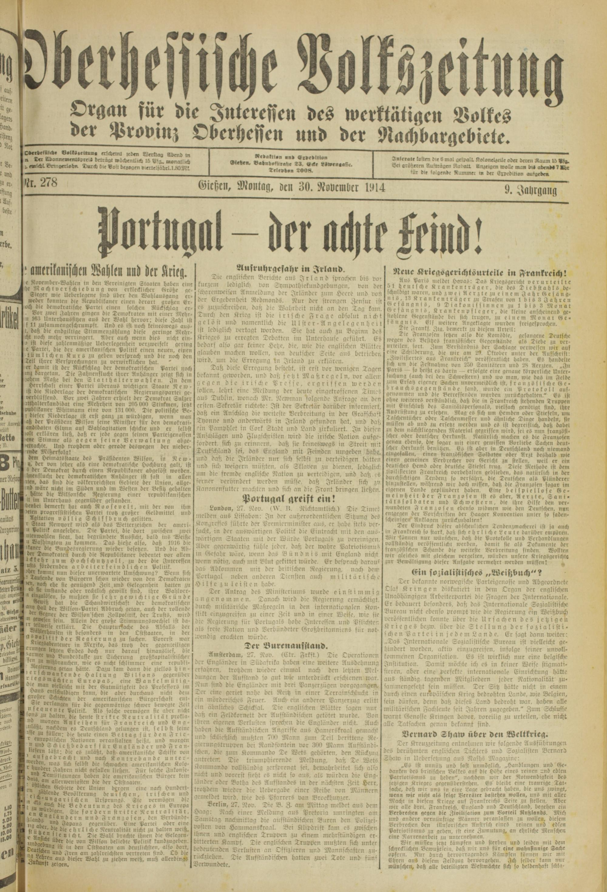 Oberhessische Volkszeitung. 1914-1923