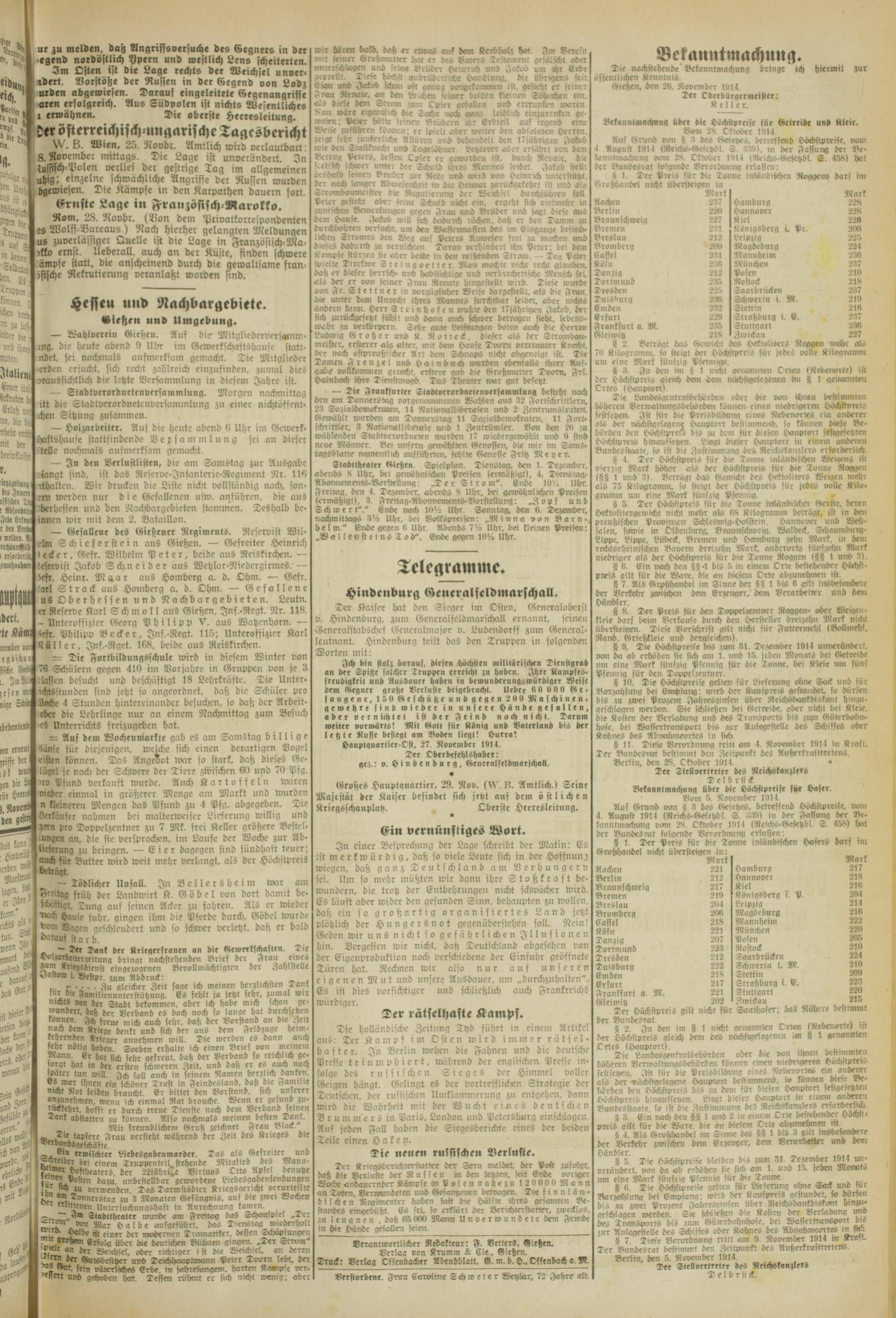 Oberhessische Volkszeitung. 1914-1923