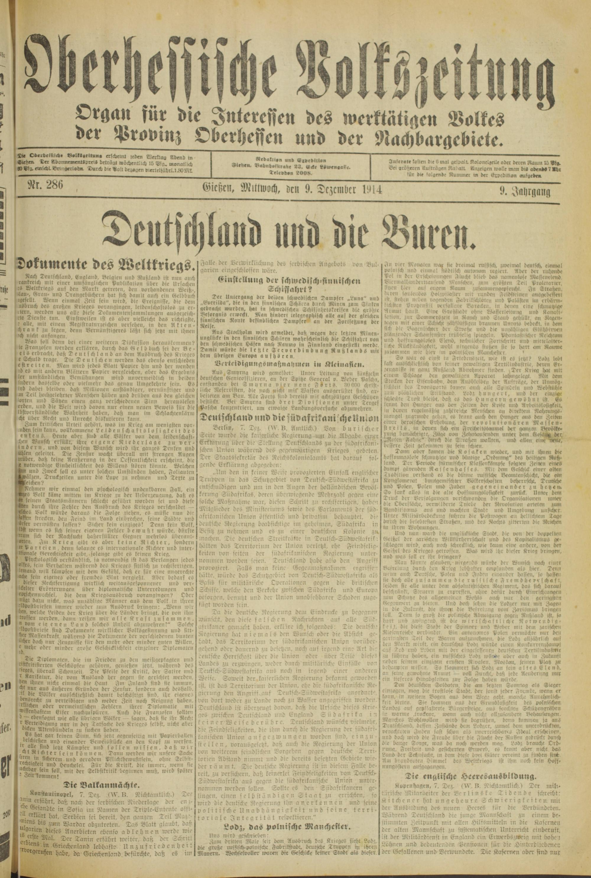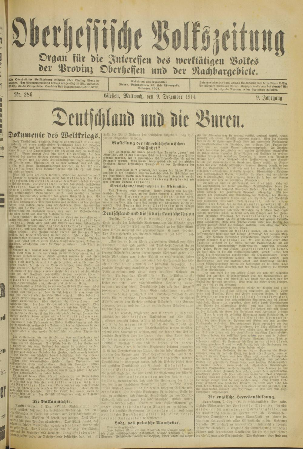 Oberhessische Volkszeitung. 1914-1923