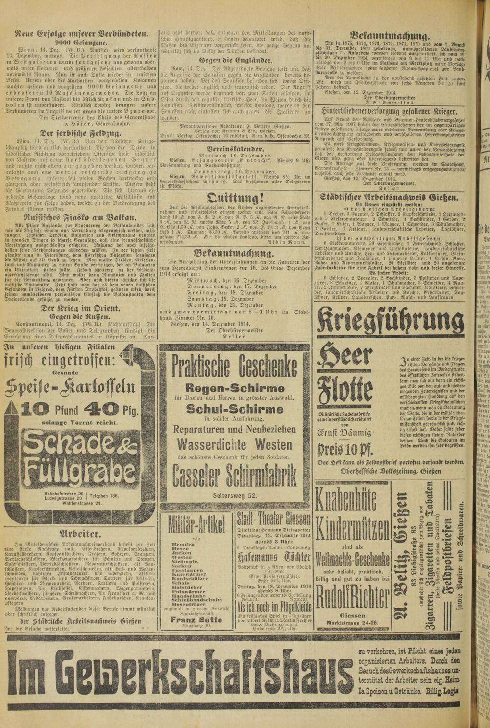 Oberhessische Volkszeitung. 1914-1923